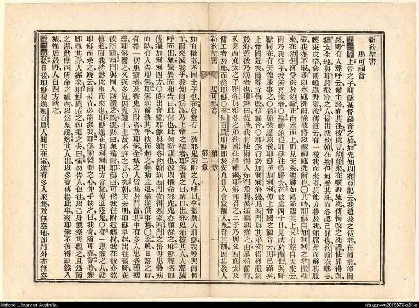 1886年新约全书 马可福音 1 章 1 节到 2 章 2 节