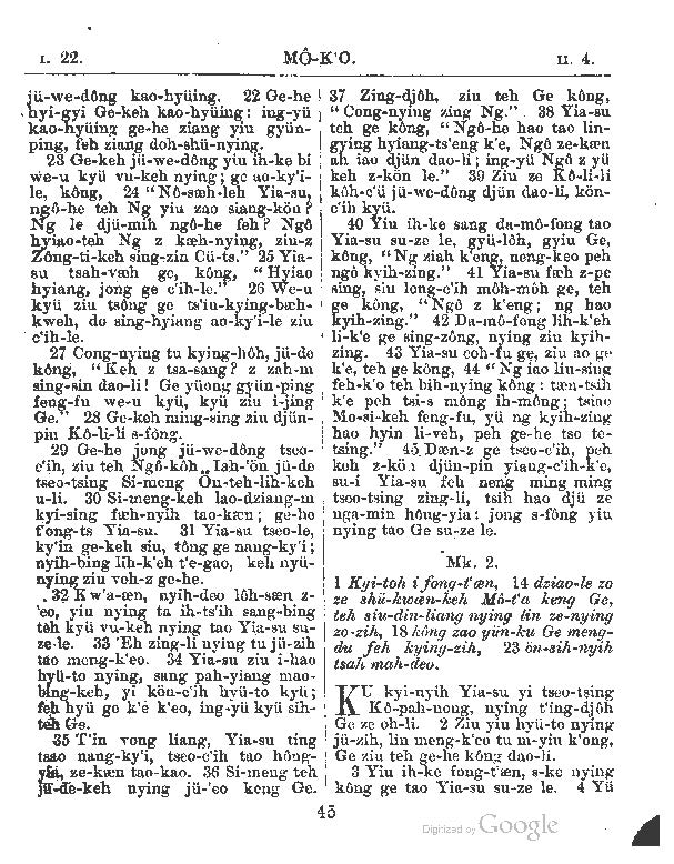 1897年新约全书 马可福音 1 章 22 节到 2 章 4 节
