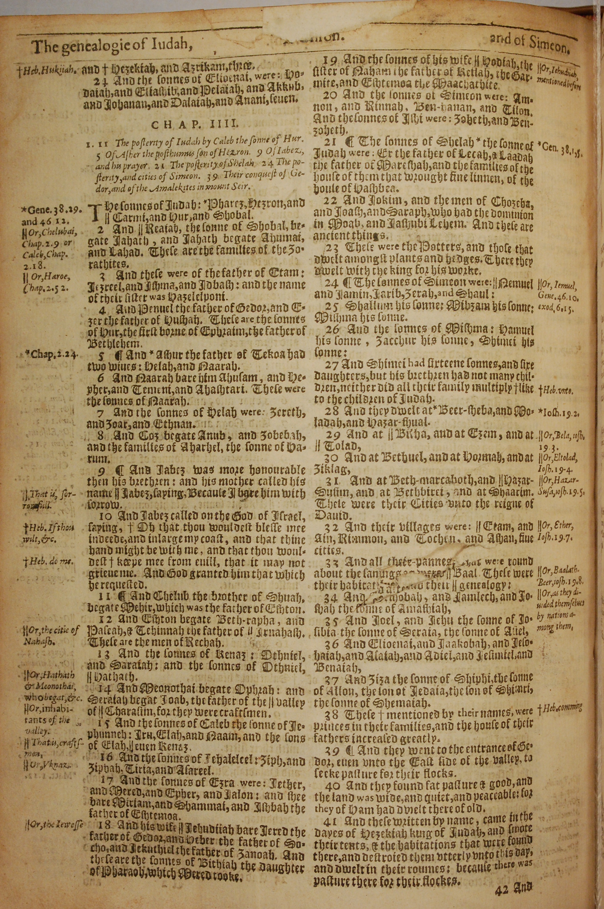 1613年The Genealogies recorded in the sacred scriptures 历代志上 3 章 24 节到 4 章 41 节
