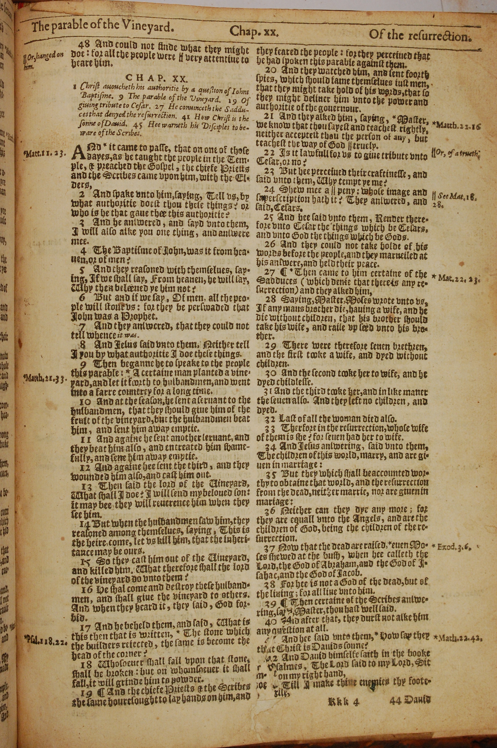 1613年The Genealogies recorded in the sacred scriptures 路加福音 19 章 48 节到 20 章 43 节