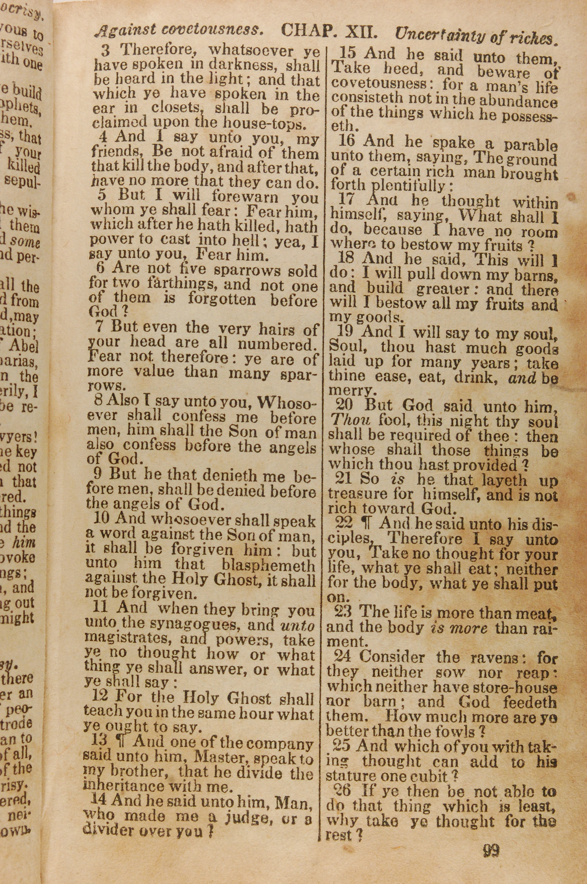 1843年The New Testament 路加福音 12 章 3 节到 12 章 26 节