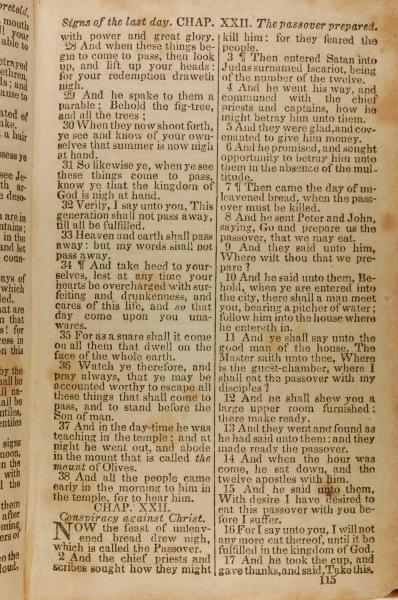 1843年The New Testament 路加福音 21 章 28 节到 22 章 17 节