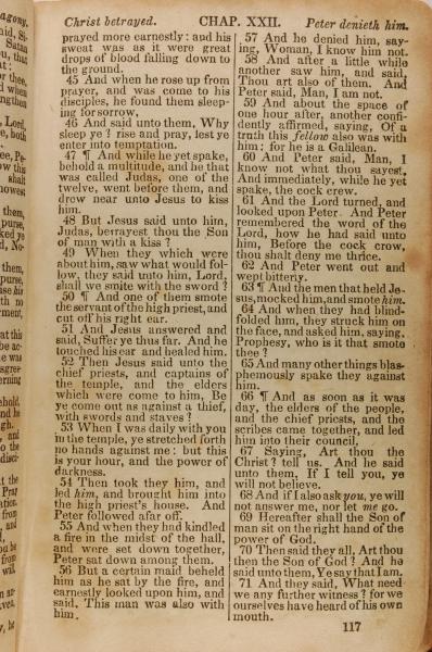 1843年The New Testament 路加福音 22 章 45 节到 22 章 71 节