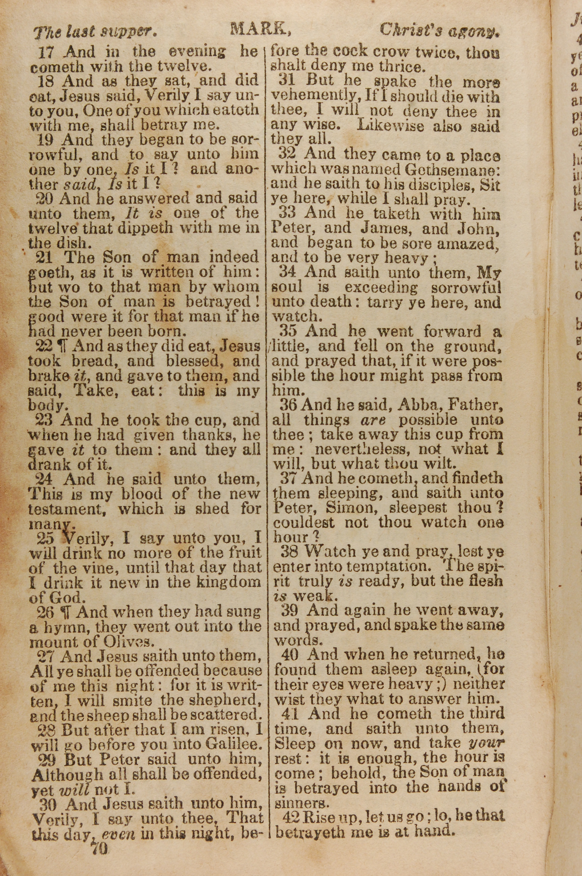 1843年The New Testament 马可福音 14 章 17 节到 14 章 42 节