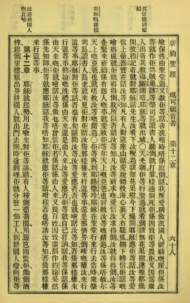 1923年新旧约全书 马可福音 11 章 16 节到 12 章 2 节