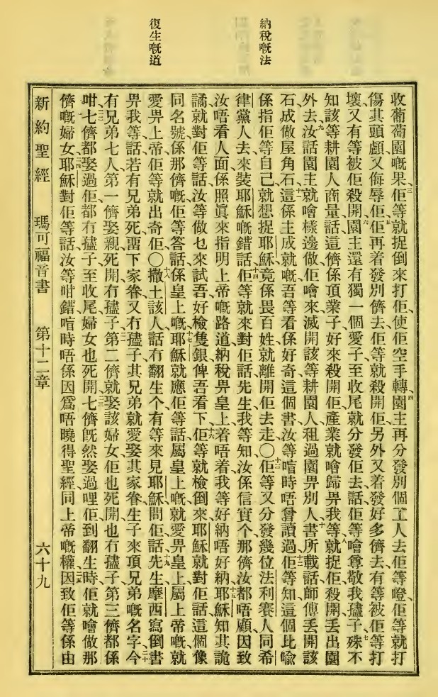 1923年新旧约全书 马可福音 12 章 2 节到 12 章 25 节