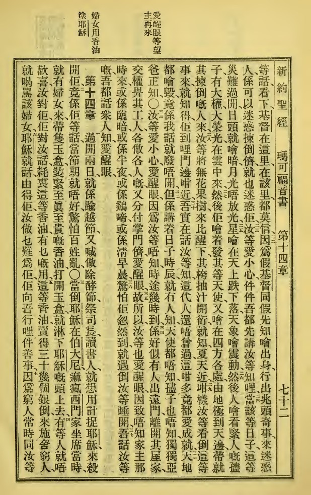 1923年新旧约全书 马可福音 13 章 21 节到 14 章 7 节