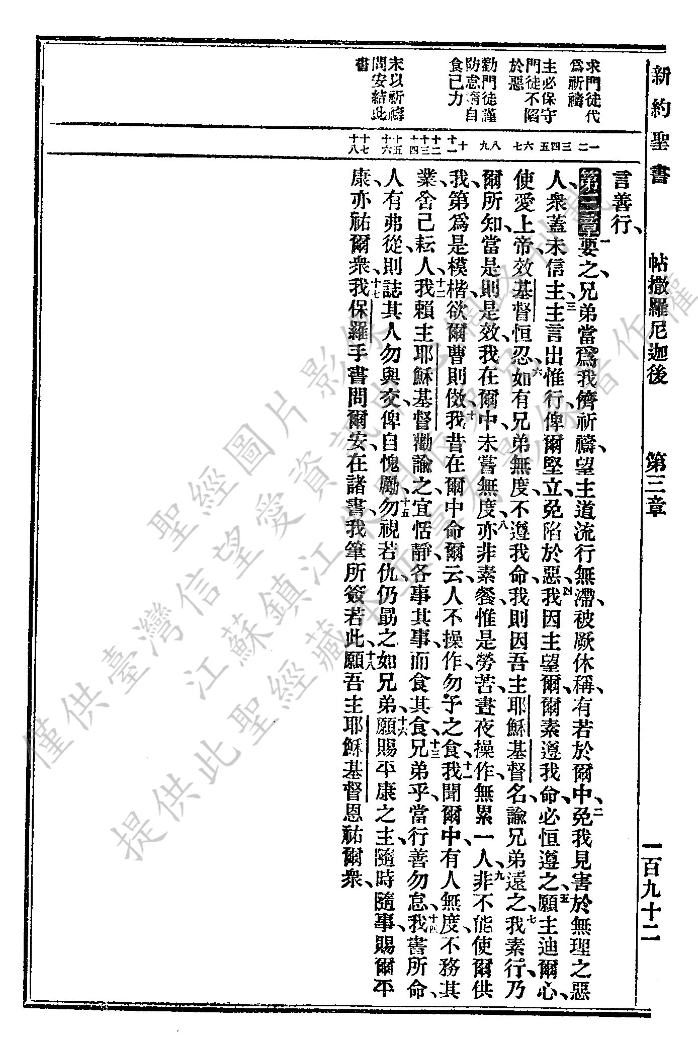 1927年新旧约全书(委办译本) 帖撒罗尼迦后书 3 章 1 节到 3 章 18 节