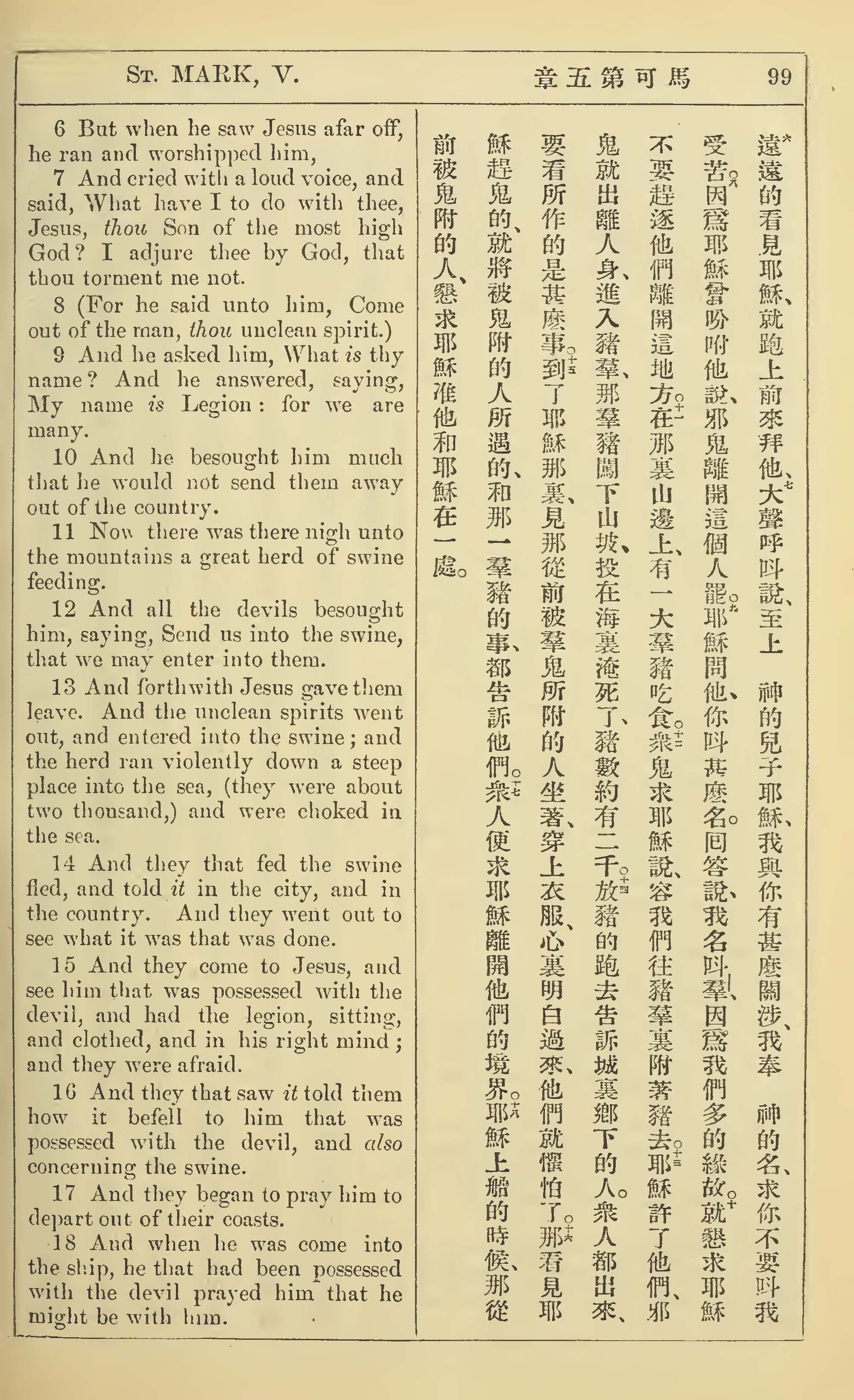 1902年新约全书(中英对照) 马可福音 5 章 6 节到 5 章 18 节