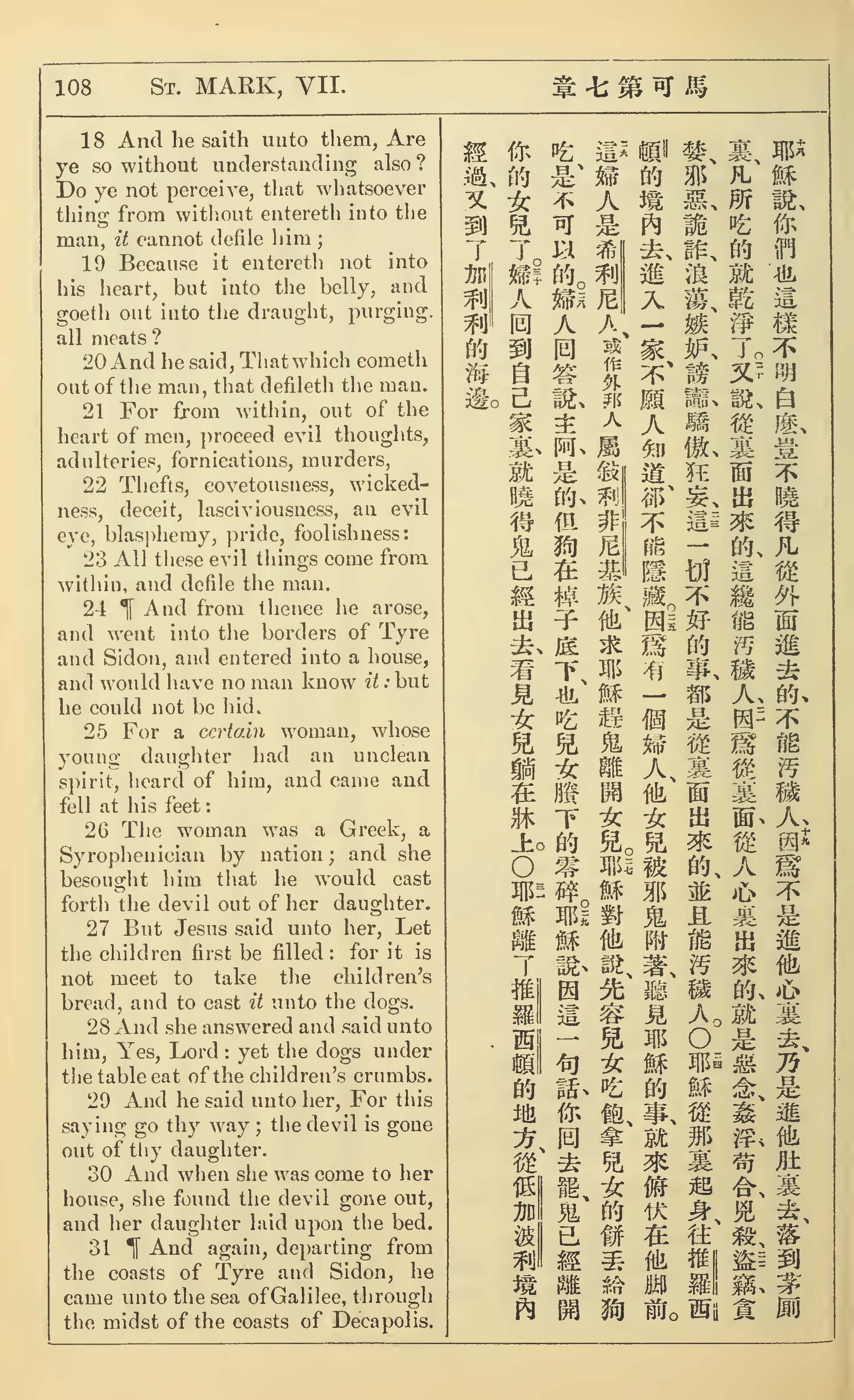 1902年新约全书(中英对照) 马可福音 7 章 18 节到 7 章 31 节
