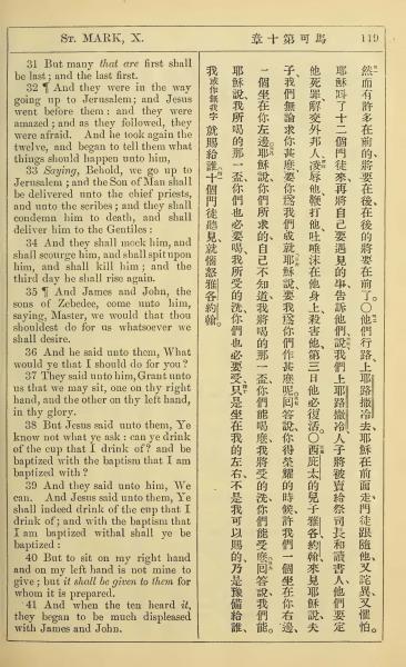 1902年新约全书(中英对照) 马可福音 10 章 31 节到 10 章 41 节