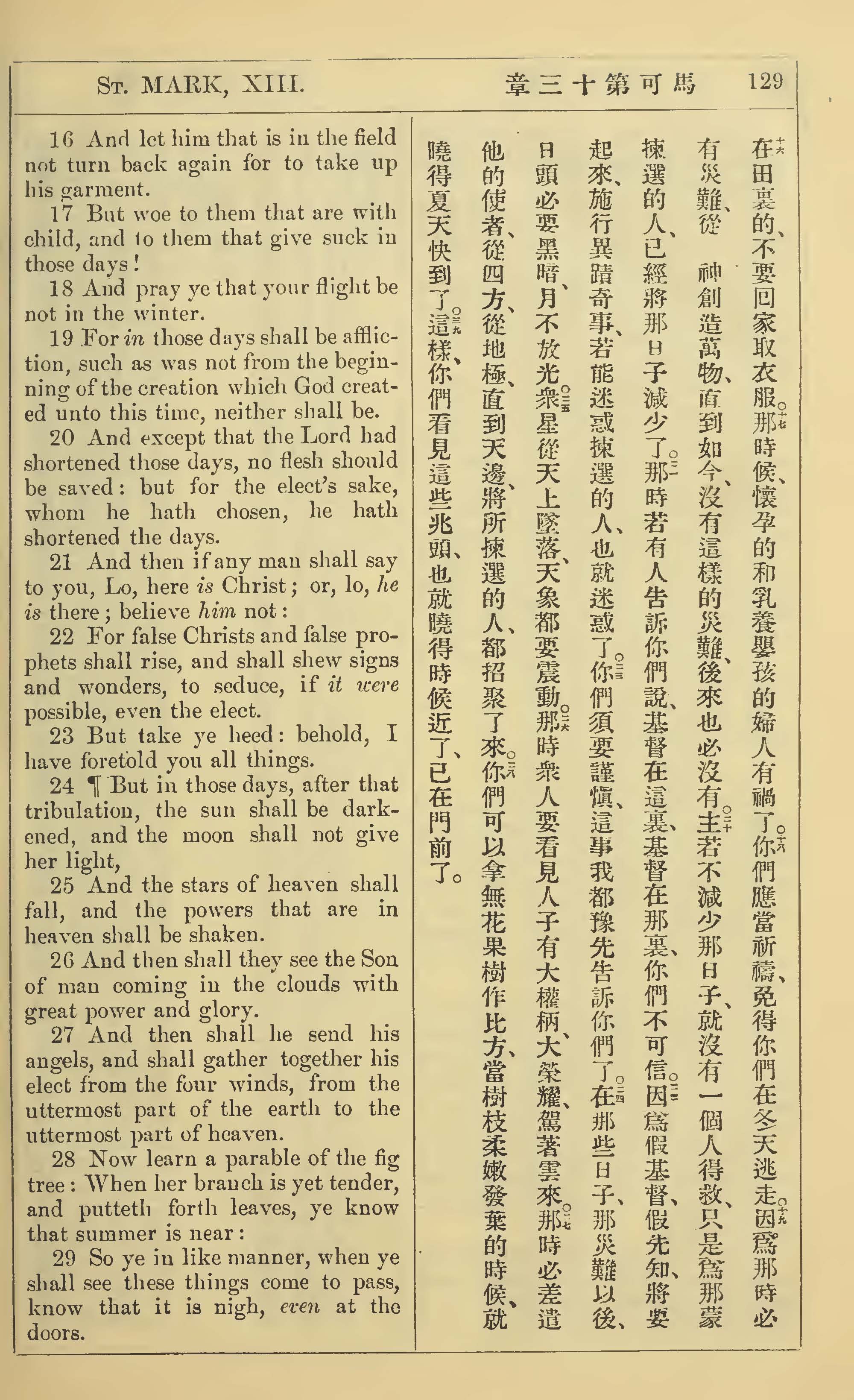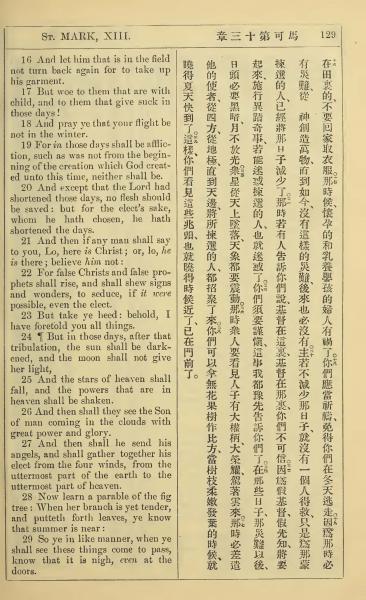 1902年新约全书(中英对照) 马可福音 13 章 16 节到 13 章 29 节