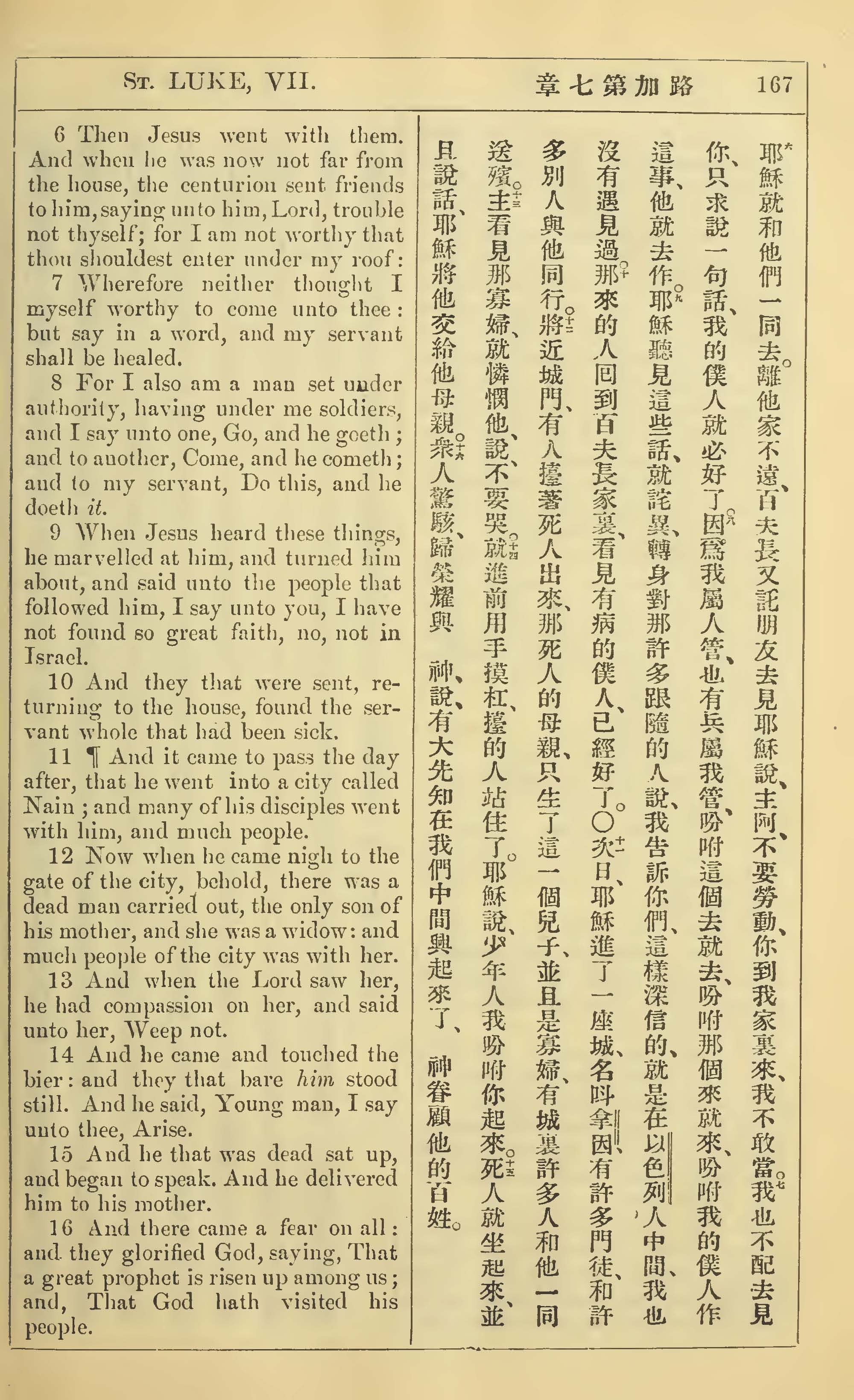 1902年新约全书(中英对照) 路加福音 7 章 6 节到 7 章 16 节