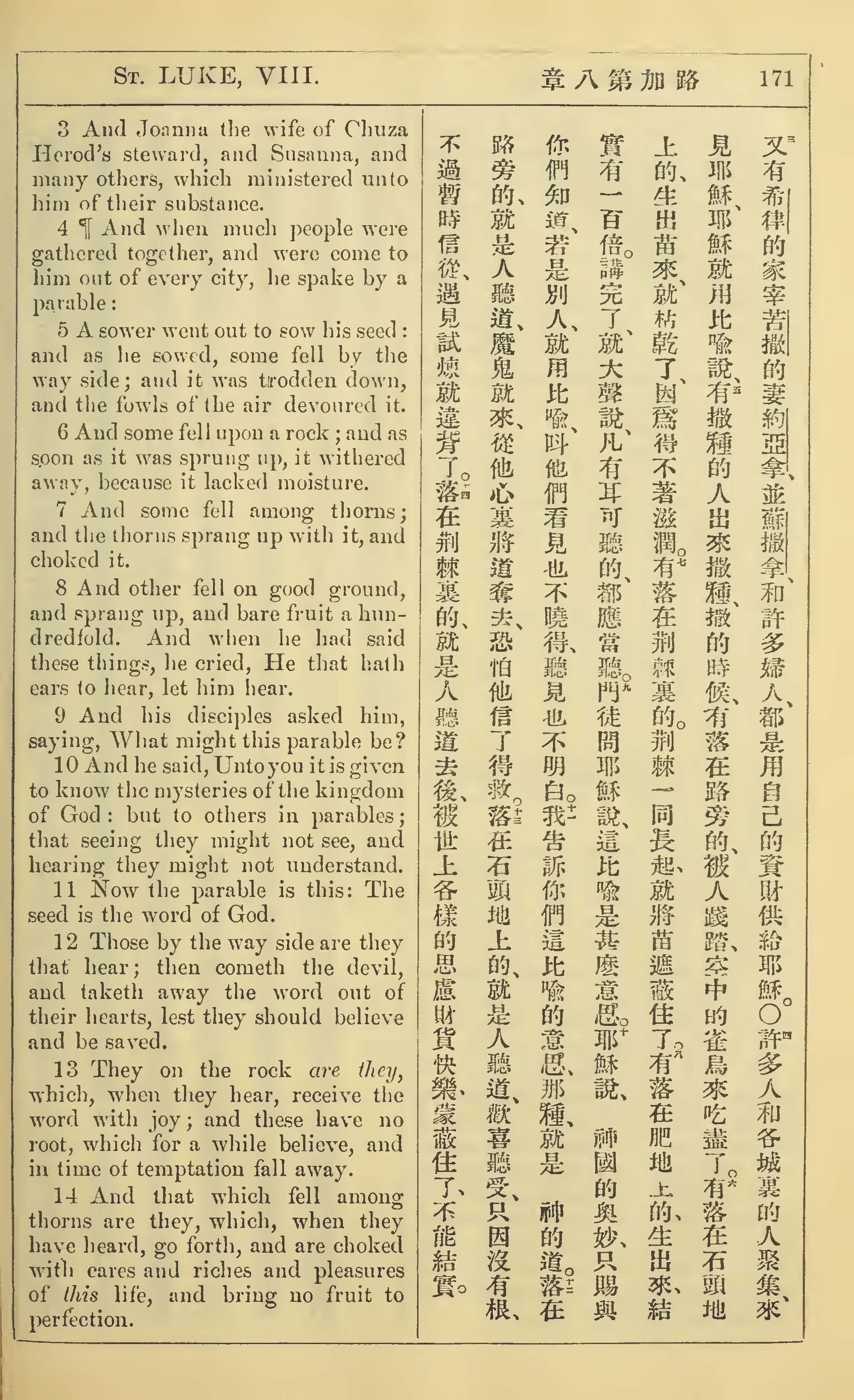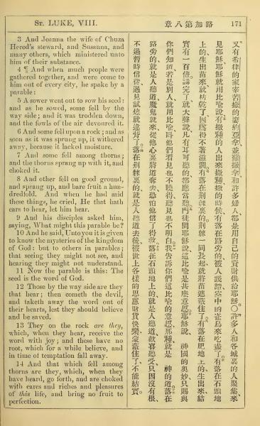 1902年新约全书(中英对照) 路加福音 8 章 3 节到 8 章 14 节