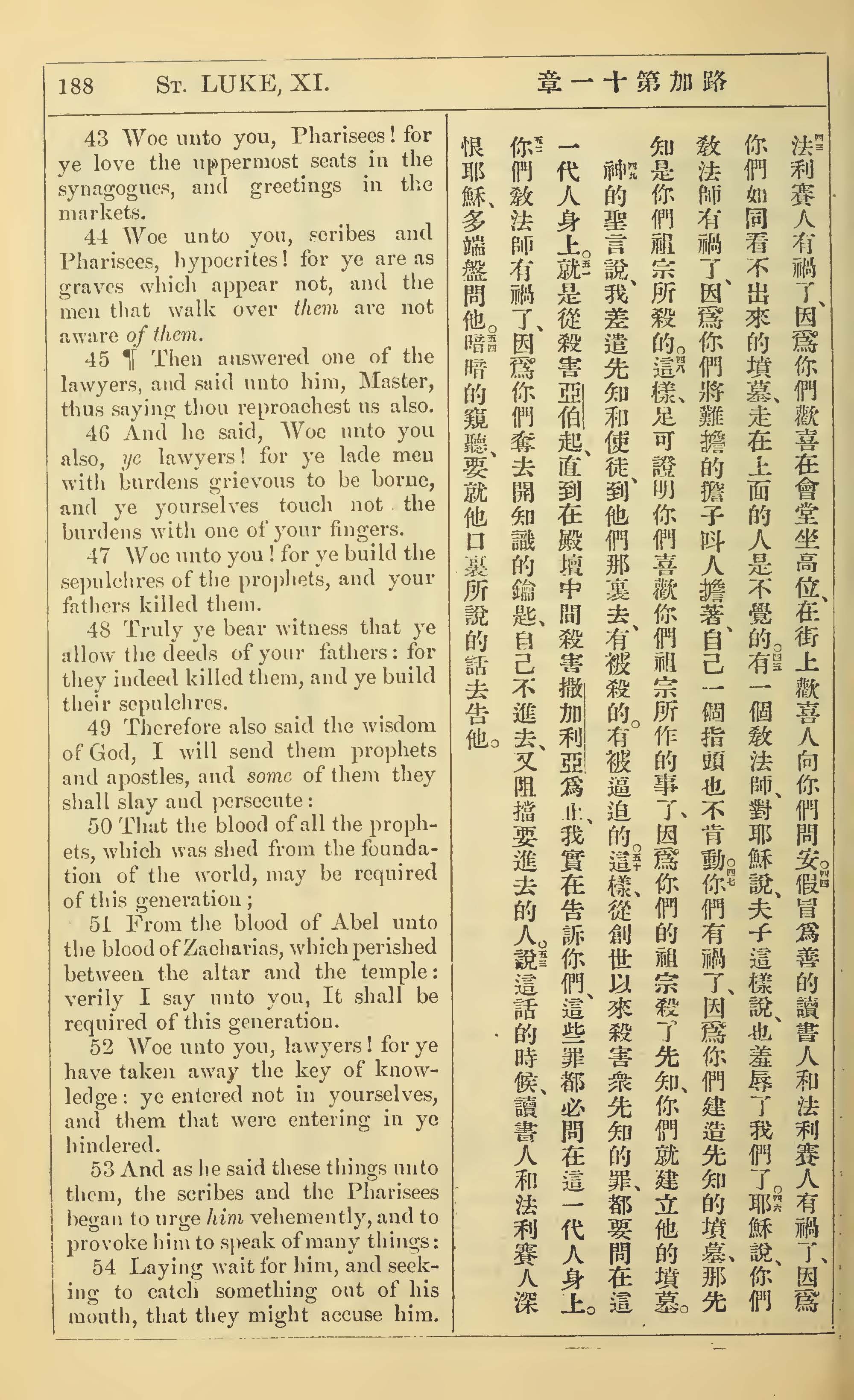 1902年新约全书(中英对照) 路加福音 11 章 43 节到 11 章 54 节
