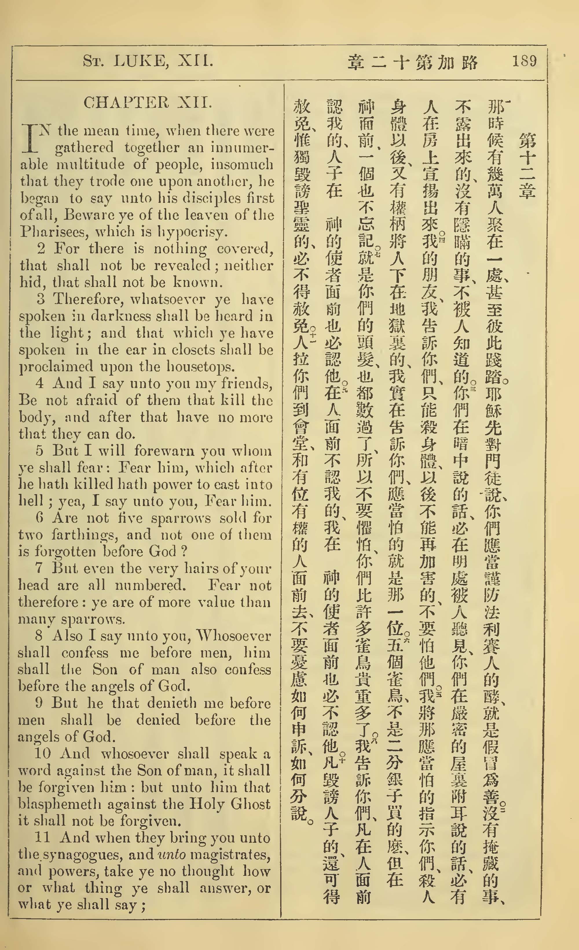 1902年新约全书(中英对照) 路加福音 12 章 1 节到 12 章 11 节