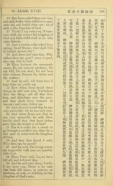 1902年新约全书(中英对照) 路加福音 18 章 16 节到 18 章 29 节