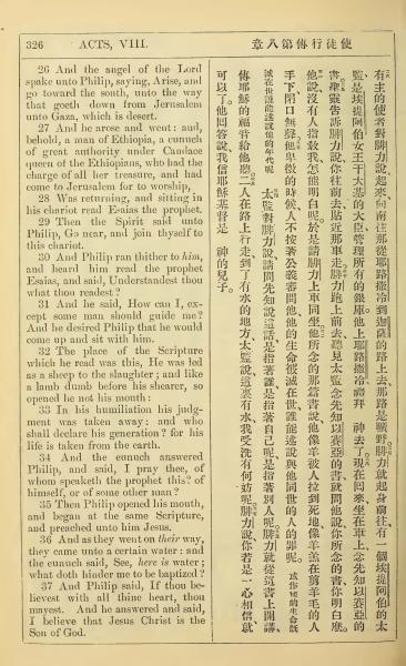 1902年新约全书(中英对照) 使徒行传 8 章 26 节到 8 章 37 节