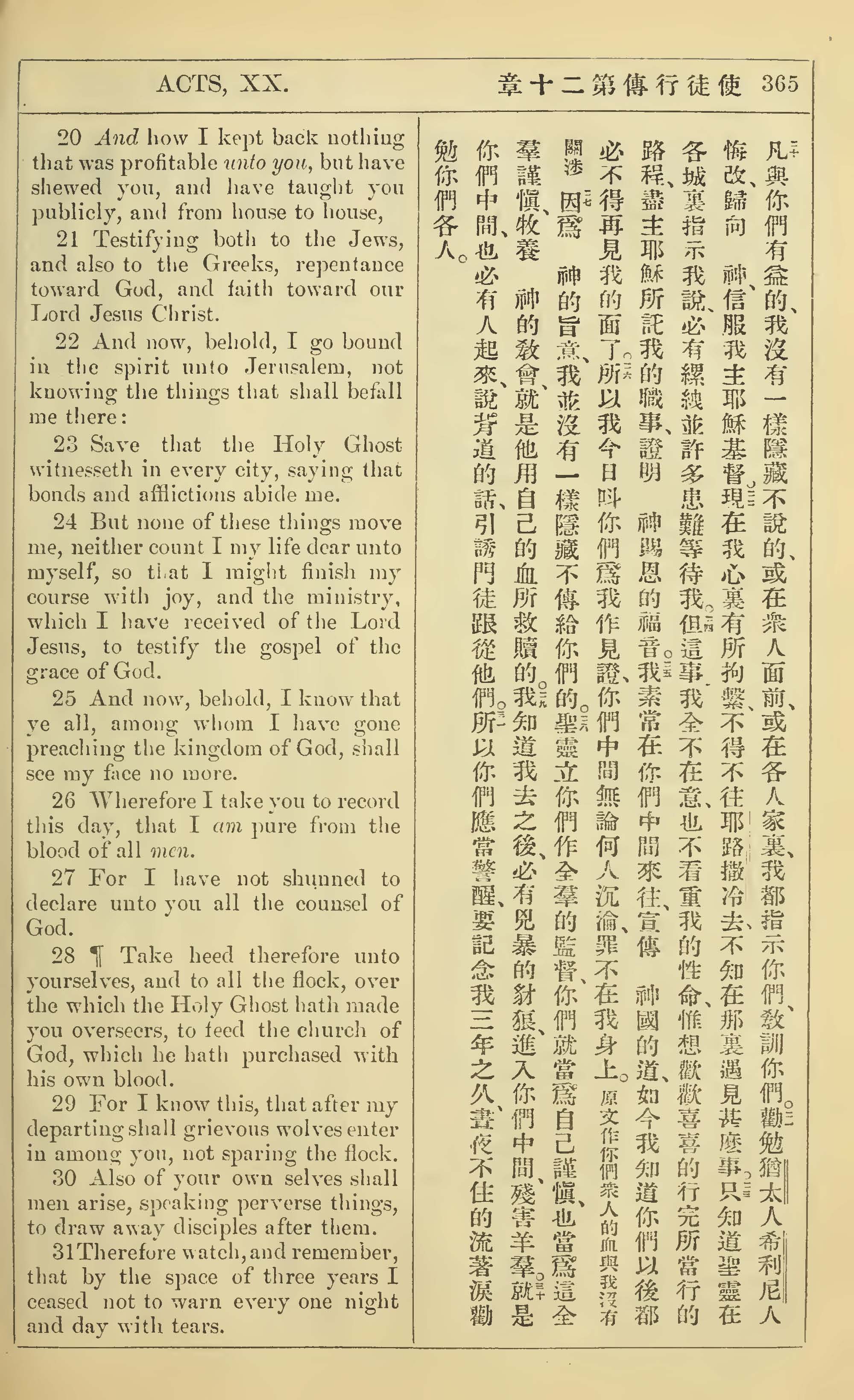 1902年新约全书(中英对照) 使徒行传 20 章 20 节到 20 章 31 节