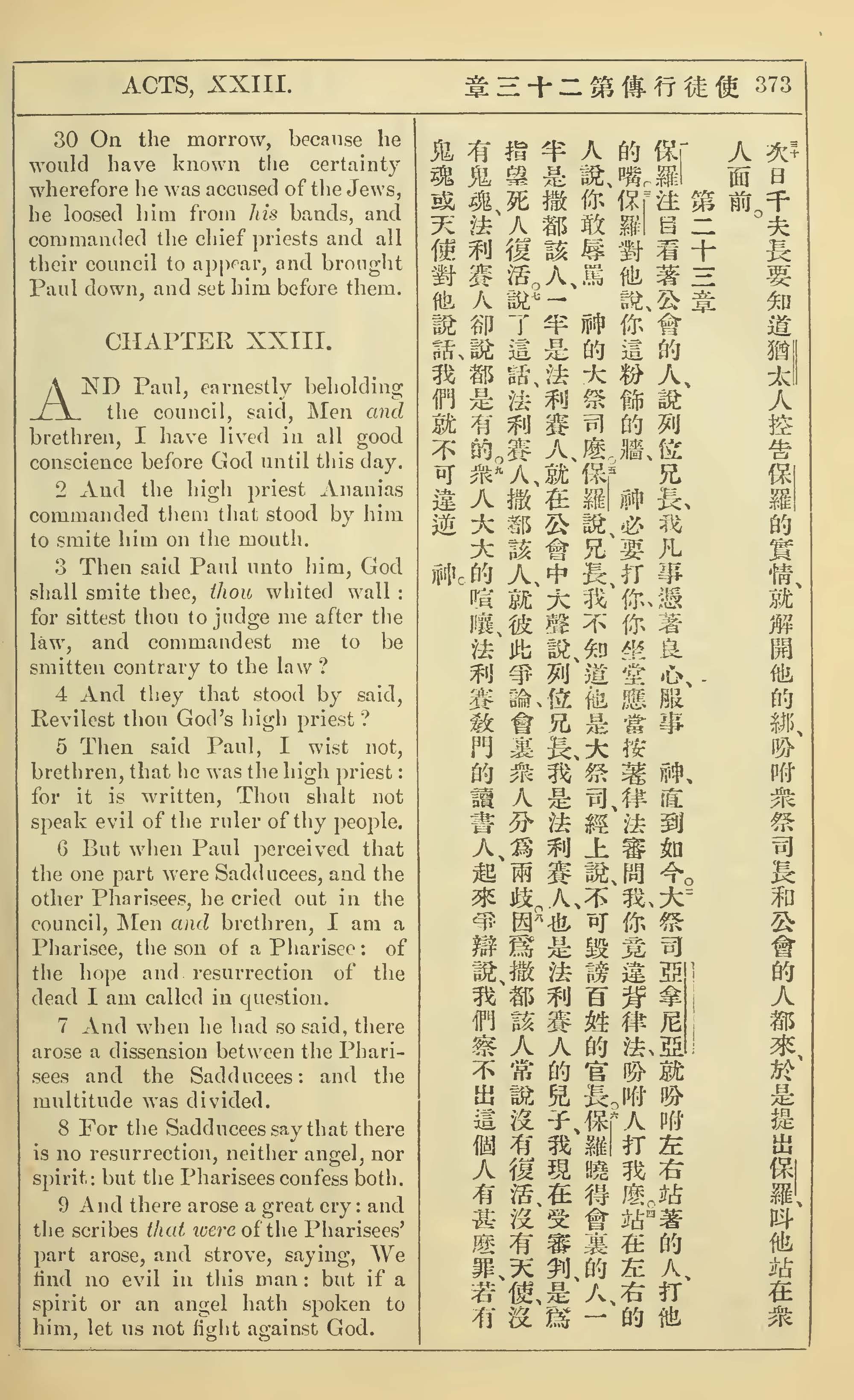 1902年新约全书(中英对照) 使徒行传 22 章 30 节到 23 章 9 节