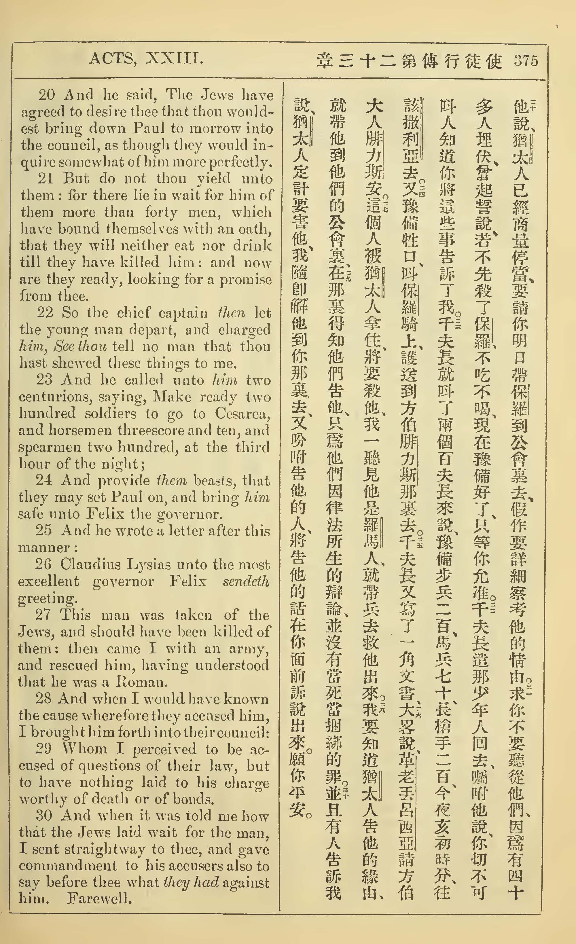 1902年新约全书(中英对照) 使徒行传 23 章 20 节到 23 章 30 节