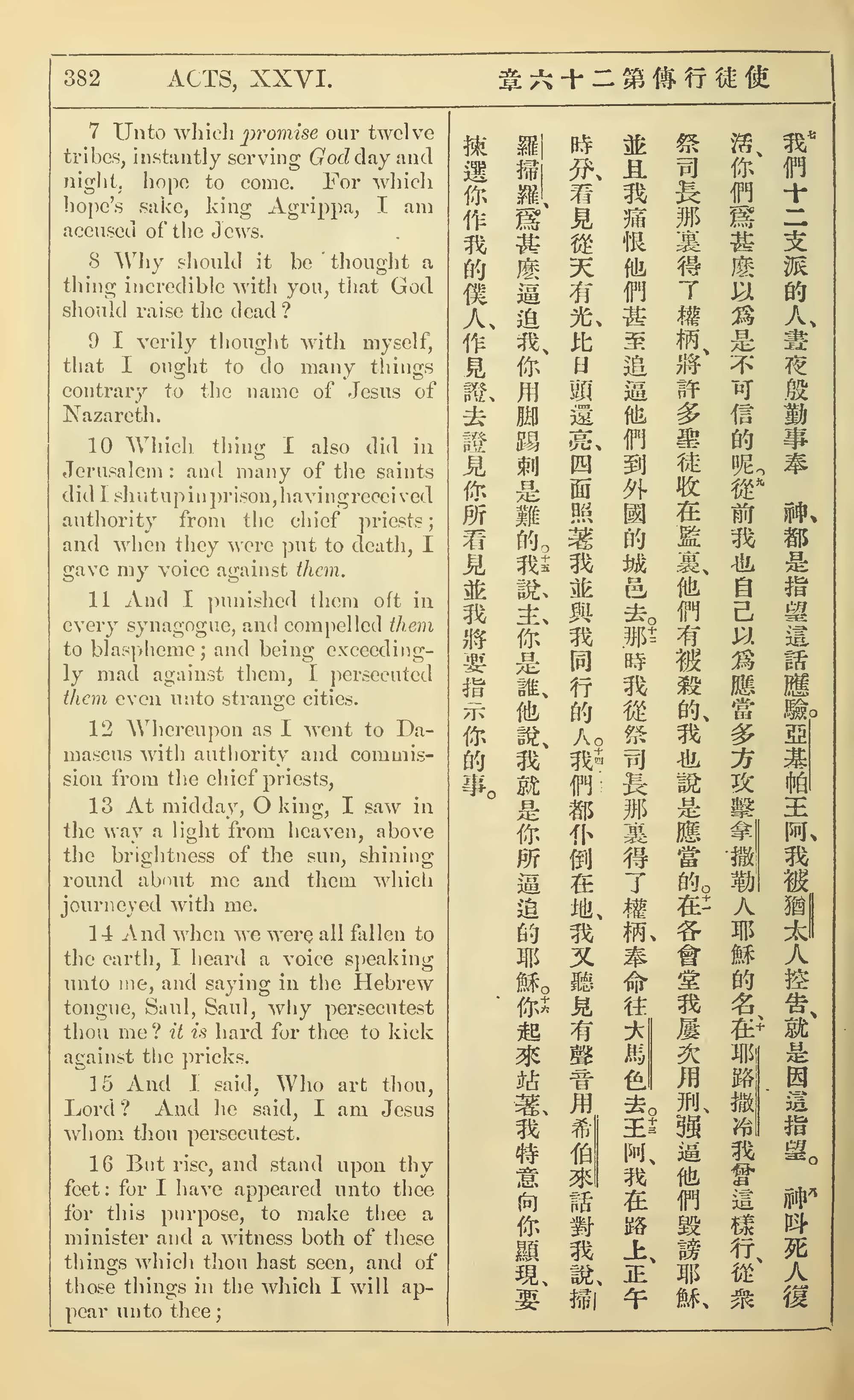 1902年新约全书(中英对照) 使徒行传 26 章 7 节到 26 章 16 节