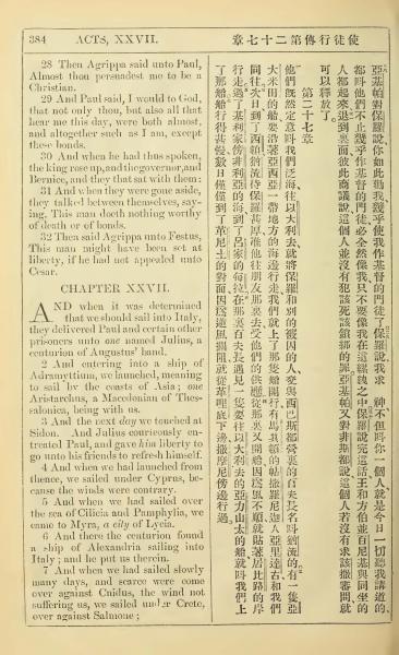 1902年新约全书(中英对照) 使徒行传 26 章 28 节到 27 章 7 节