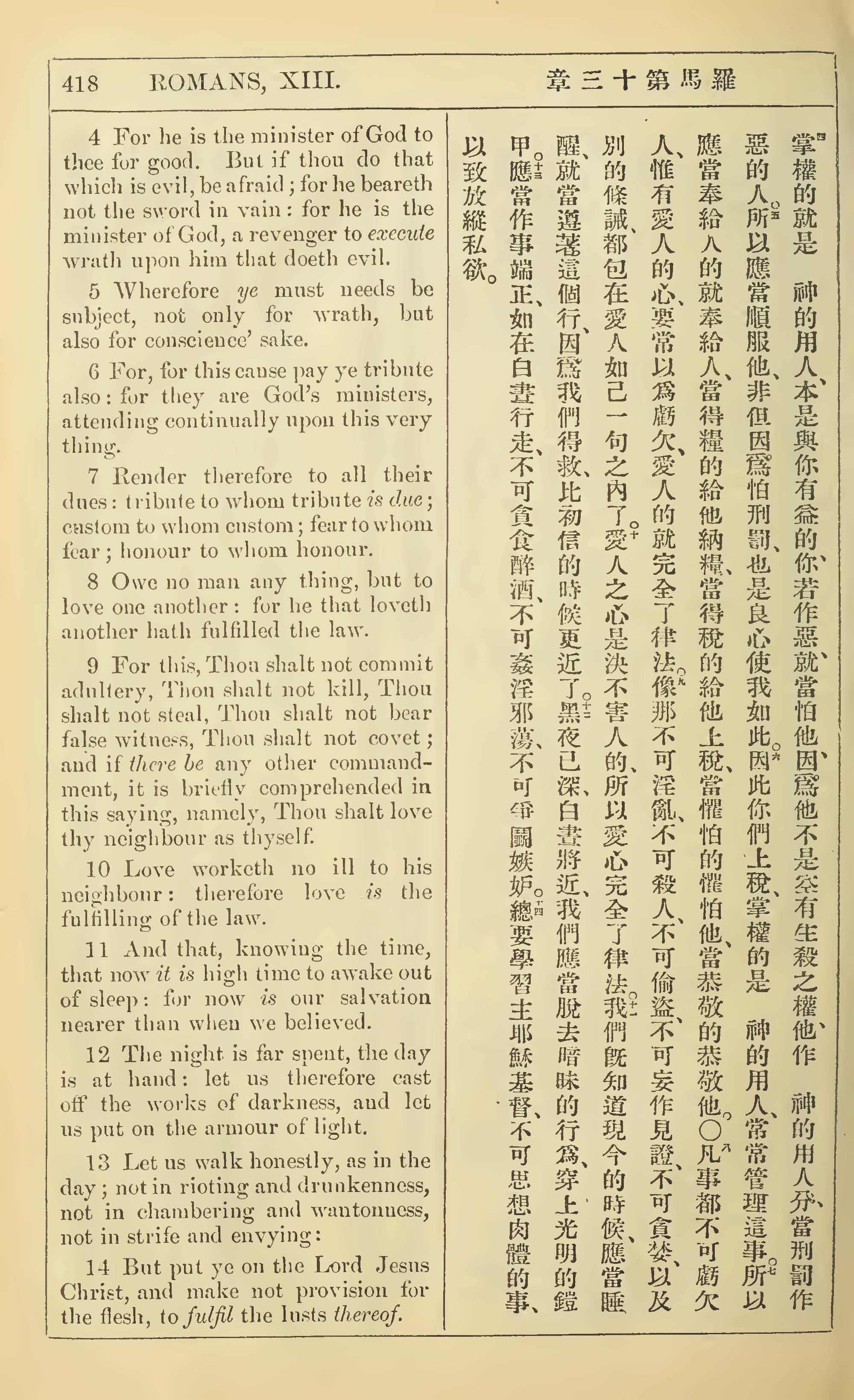1902年新约全书(中英对照) 罗马书 13 章 4 节到 13 章 14 节