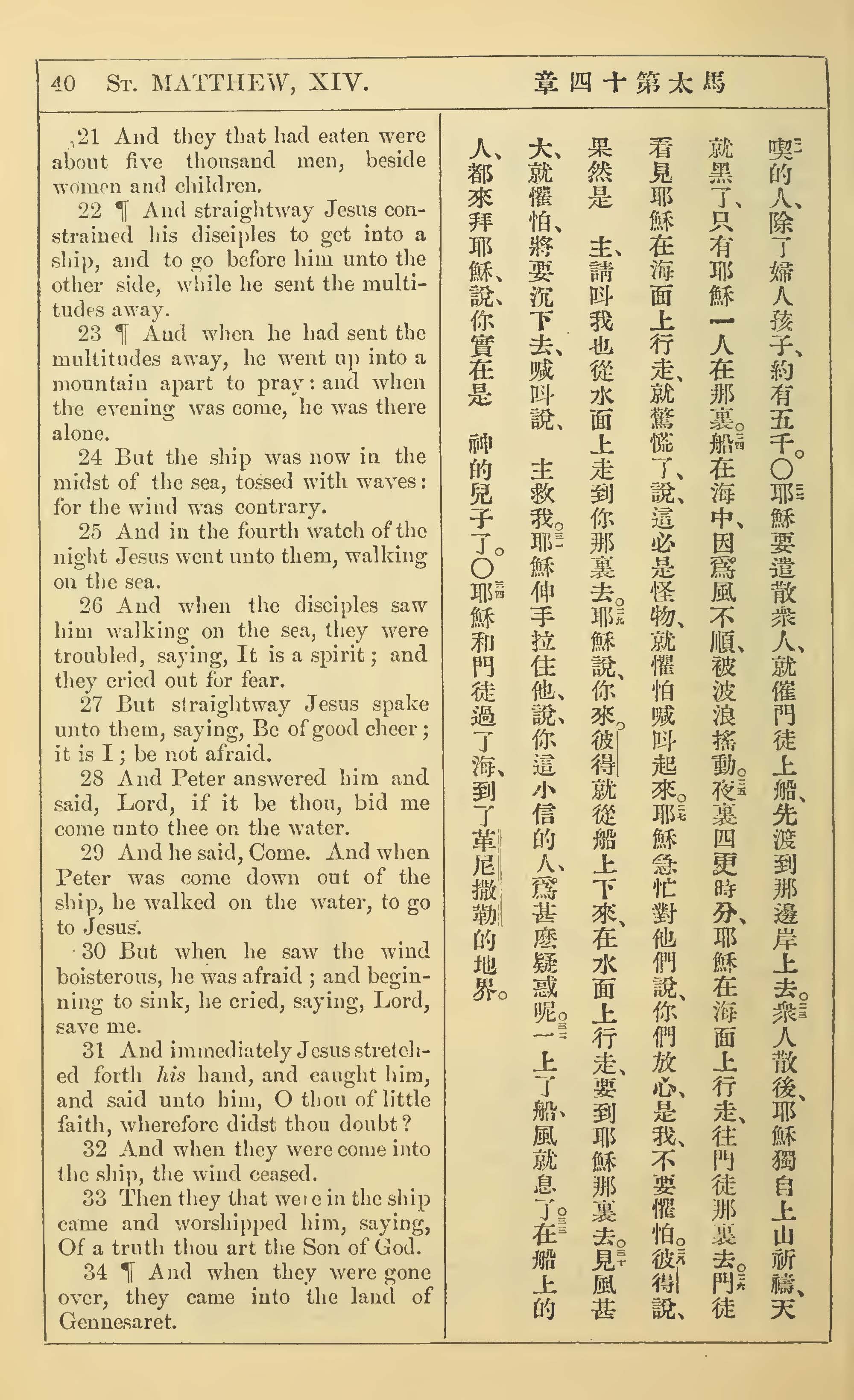 1902年新约全书(中英对照) 马太福音 14 章 21 节到 14 章 34 节