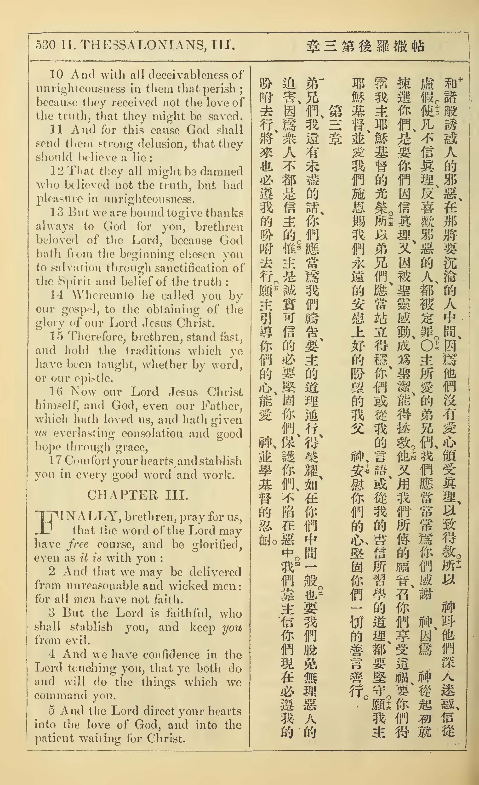 1902年新约全书(中英对照) 帖撒罗尼迦后书 2 章 10 节到 3 章 5 节