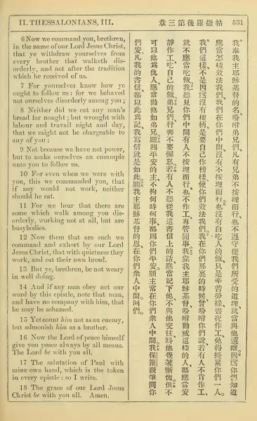 1902年新约全书(中英对照) 帖撒罗尼迦后书 3 章 6 节到 3 章 18 节