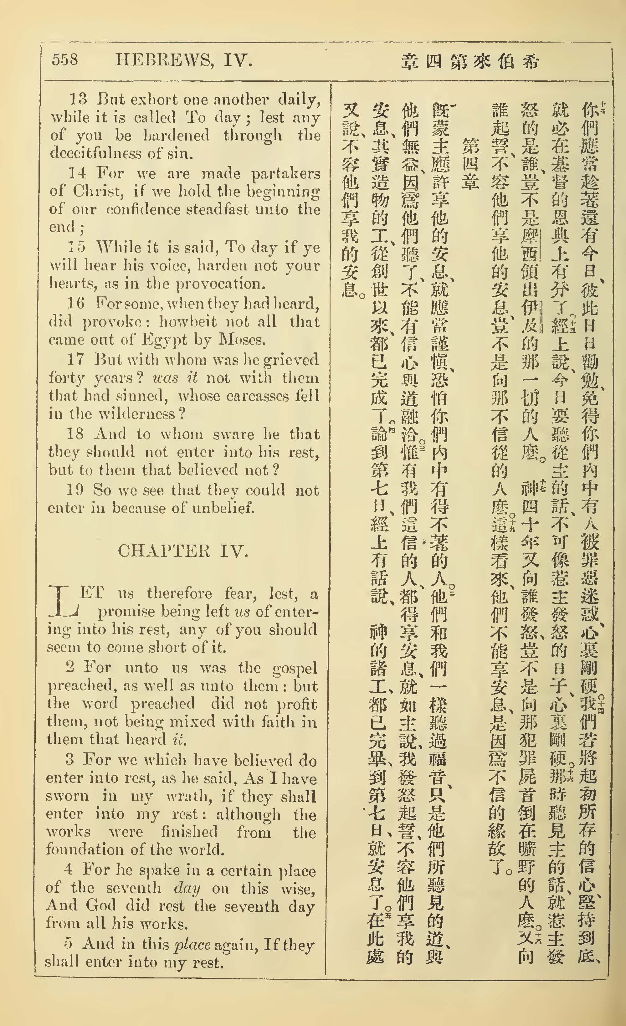1902年新约全书(中英对照) 希伯来书 3 章 15 节到 4 章 5 节