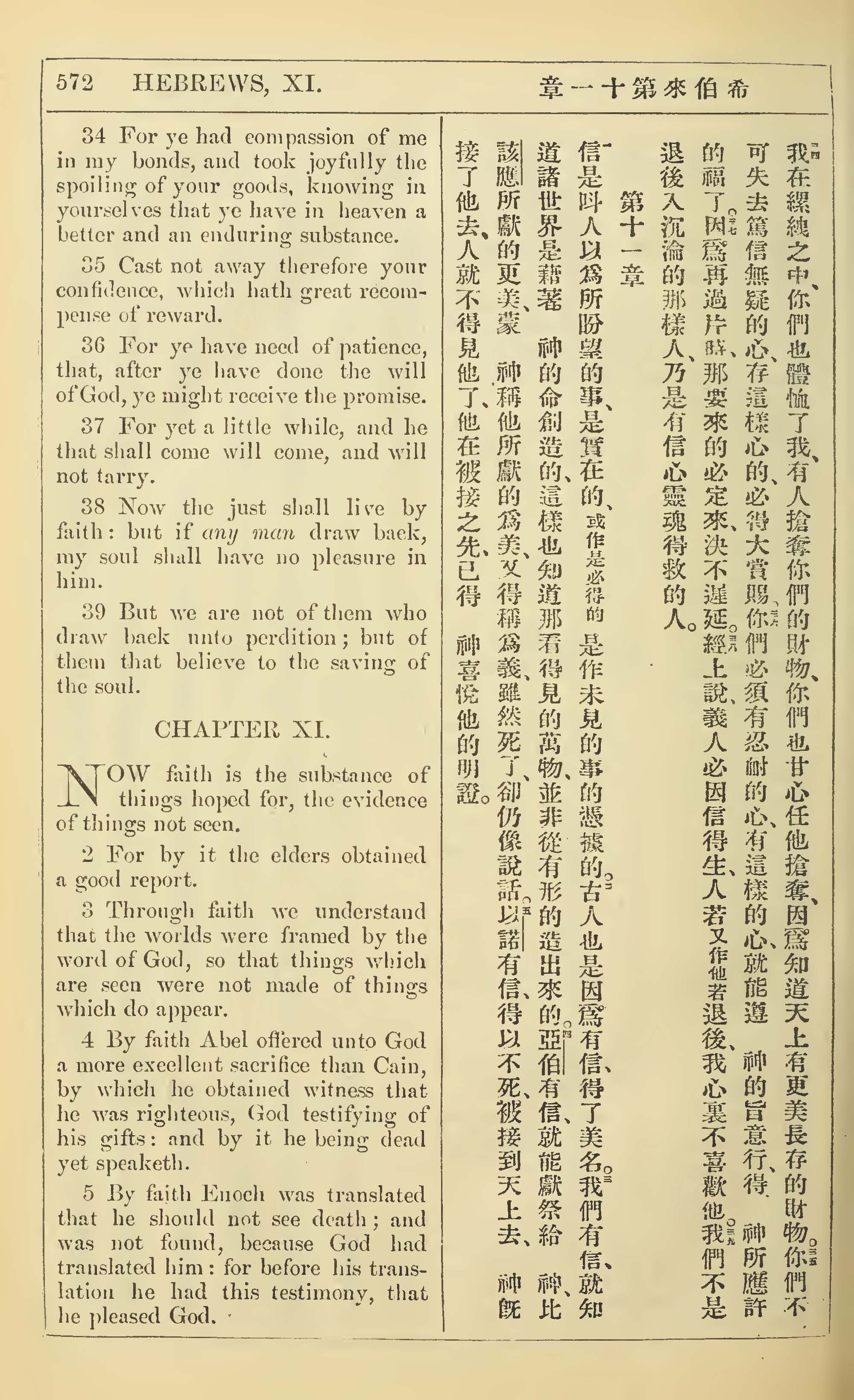1902年新约全书(中英对照) 希伯来书 10 章 34 节到 11 章 5 节