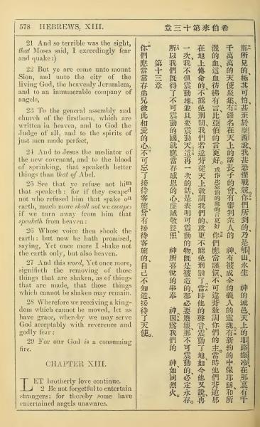 1902年新约全书(中英对照) 希伯来书 12 章 21 节到 13 章 2 节
