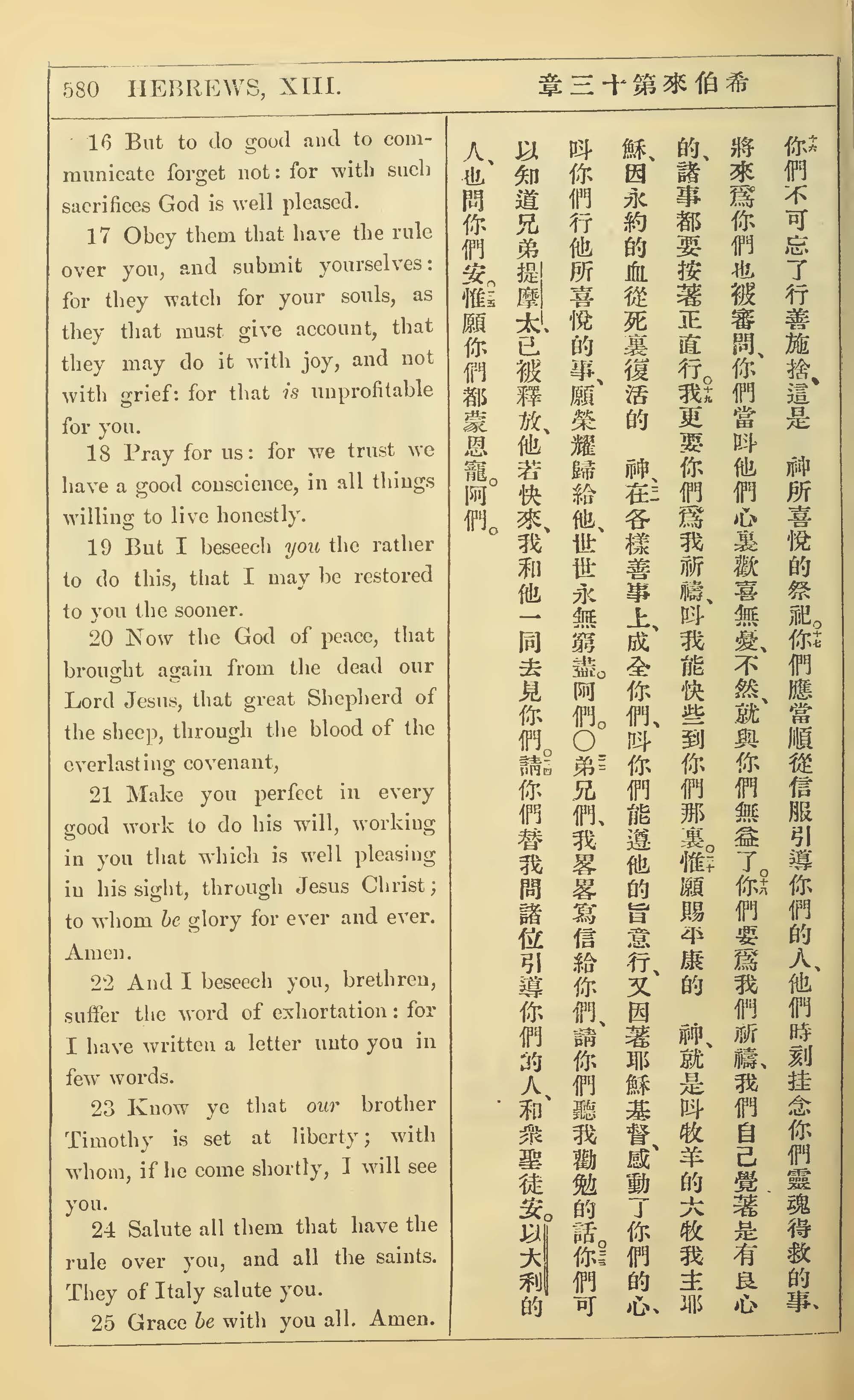 1902年新约全书(中英对照) 希伯来书 13 章 16 节到 13 章 25 节