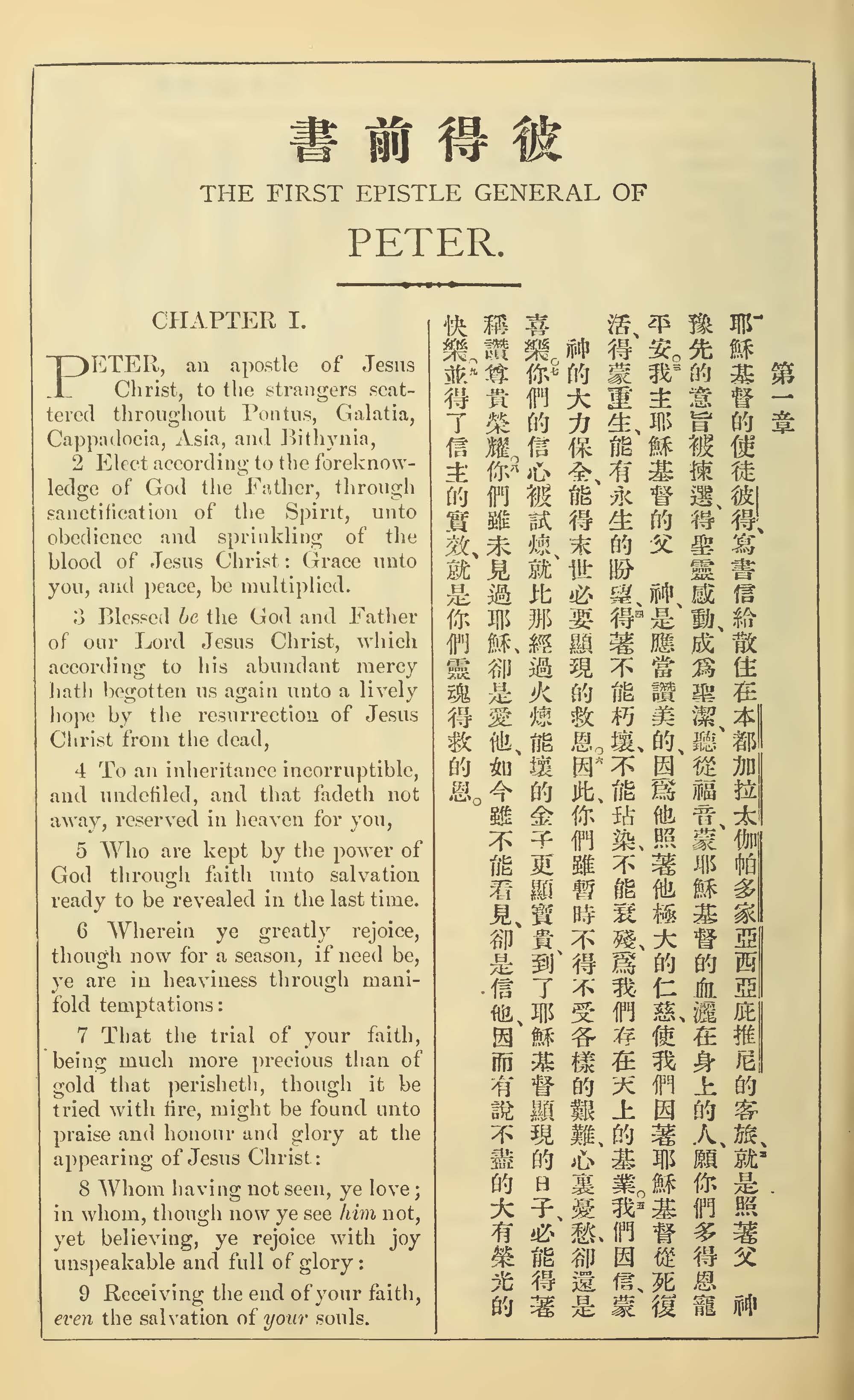 1902年新约全书(中英对照) 彼得前书 1 章 1 节到 1 章 9 节