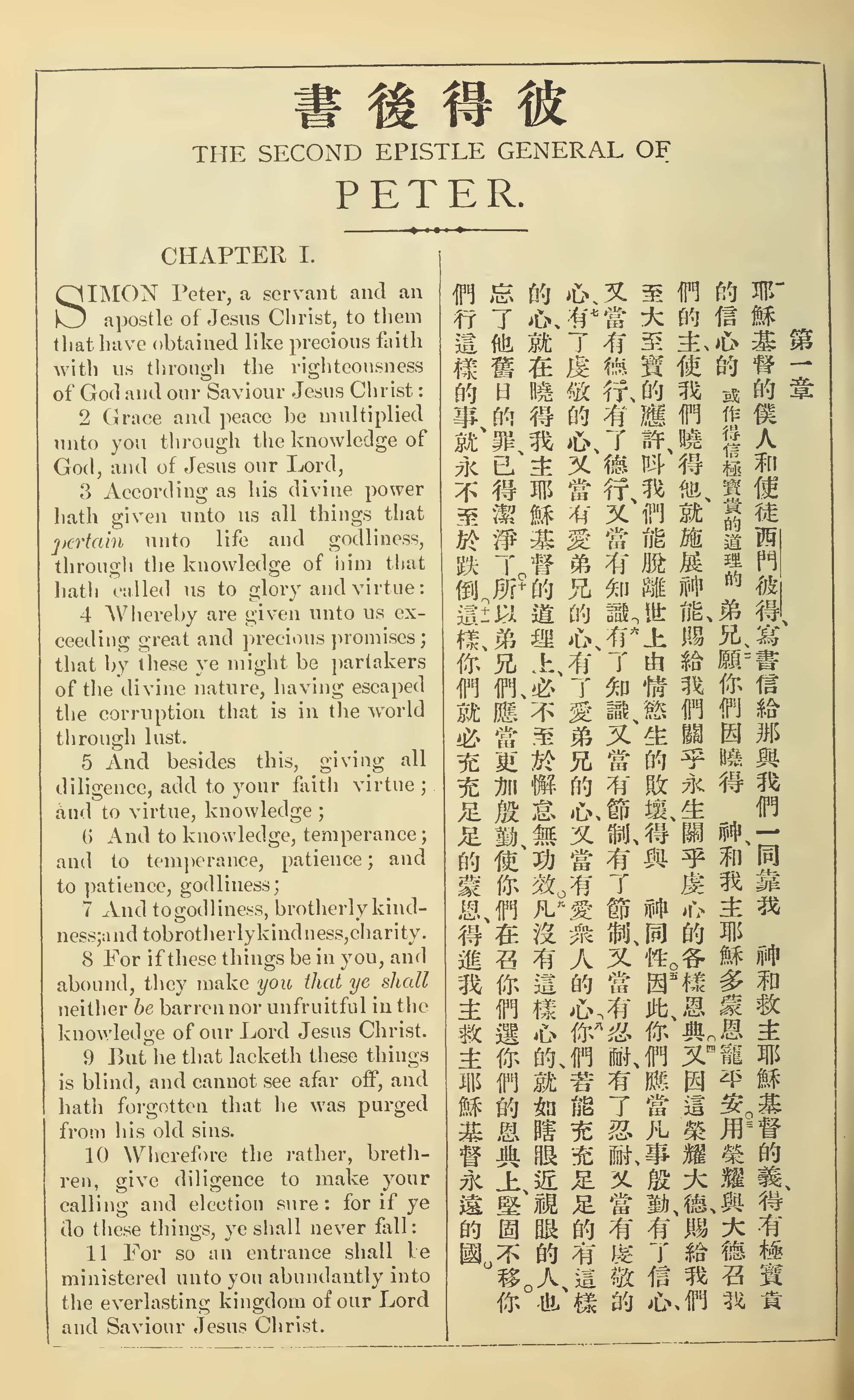 1902年新约全书(中英对照) 彼得后书 1 章 1 节到 1 章 11 节