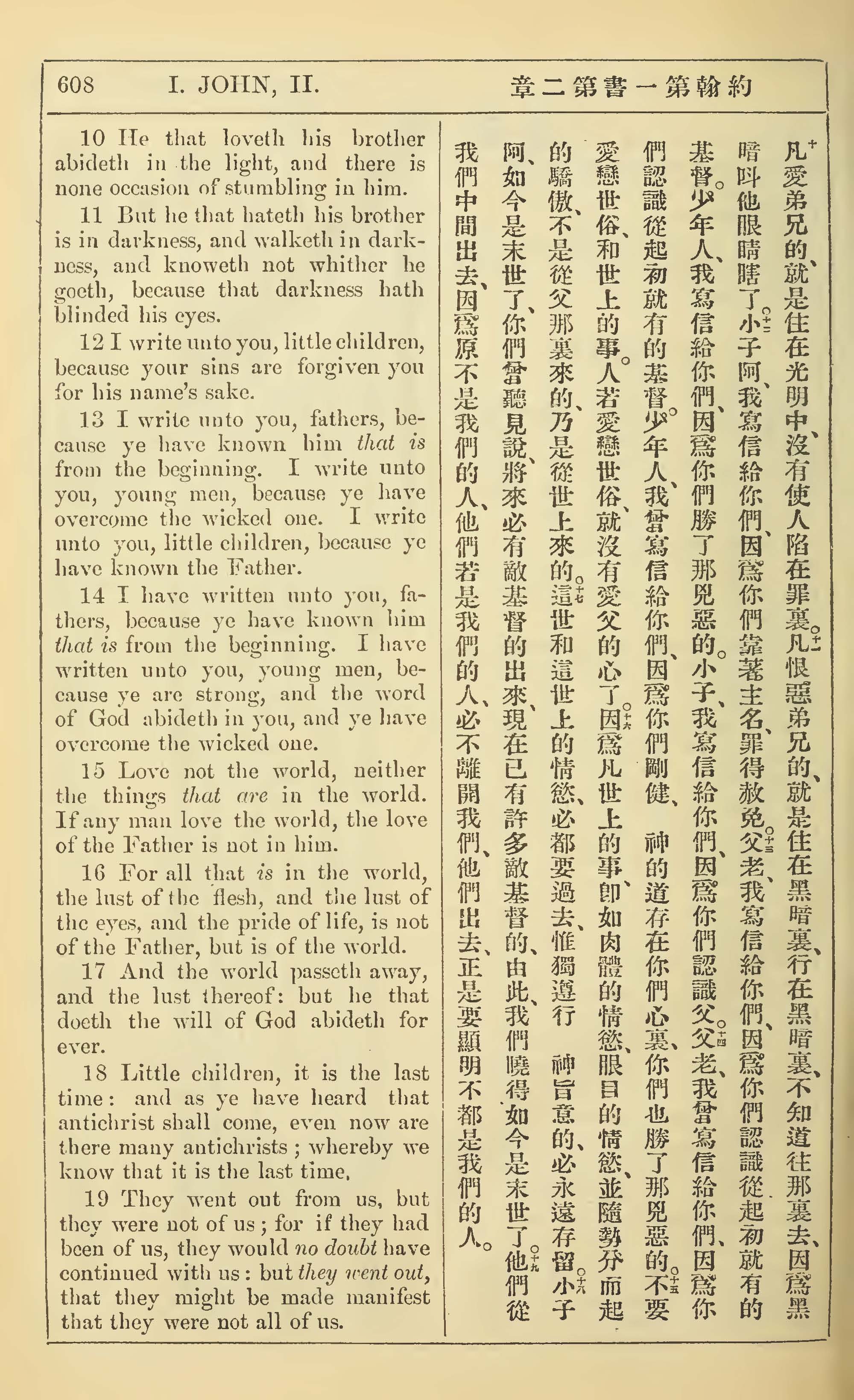 1902年新约全书(中英对照) 约翰一书 2 章 10 节到 2 章 19 节