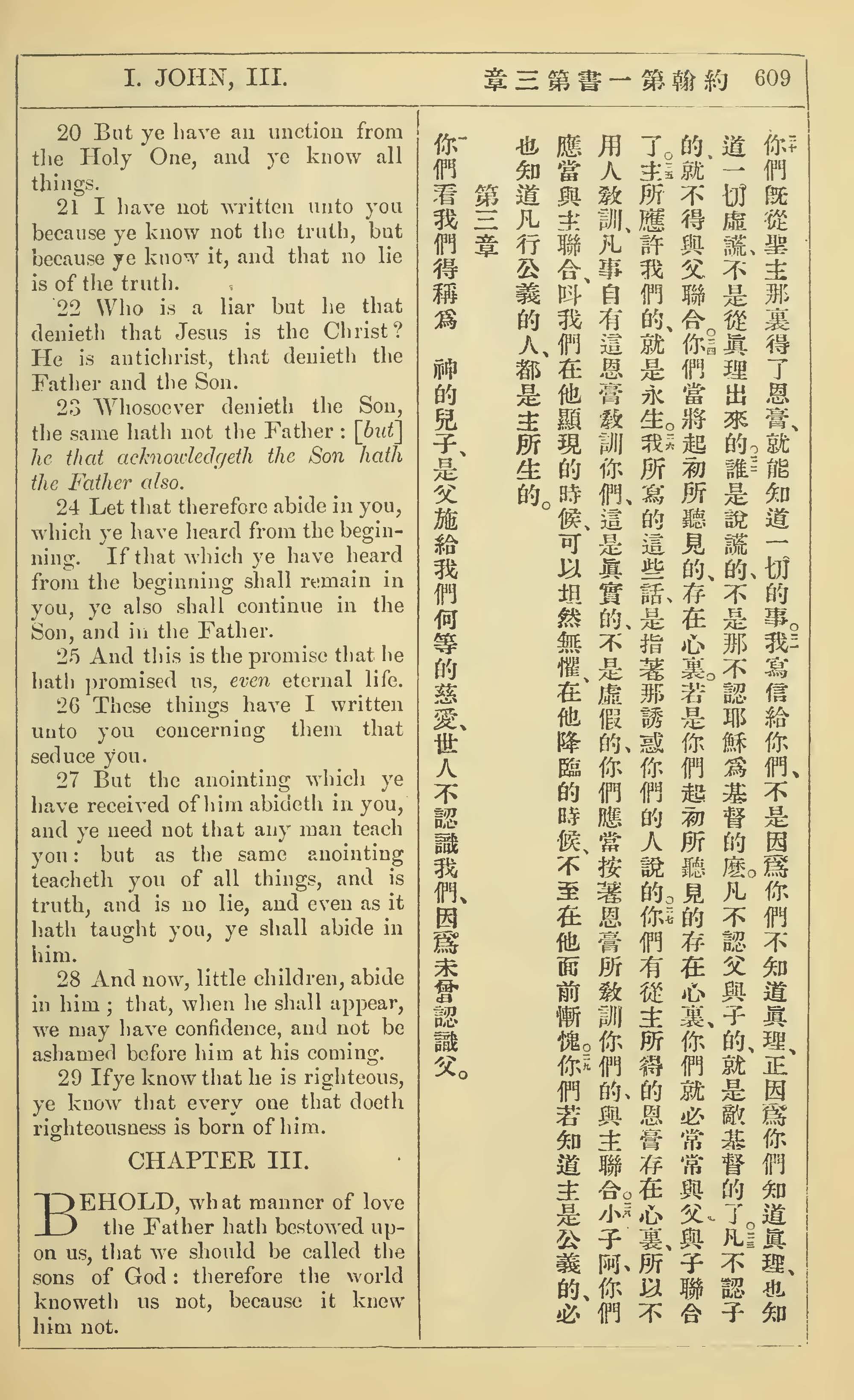1902年新约全书(中英对照) 约翰一书 2 章 20 节到 3 章 1 节