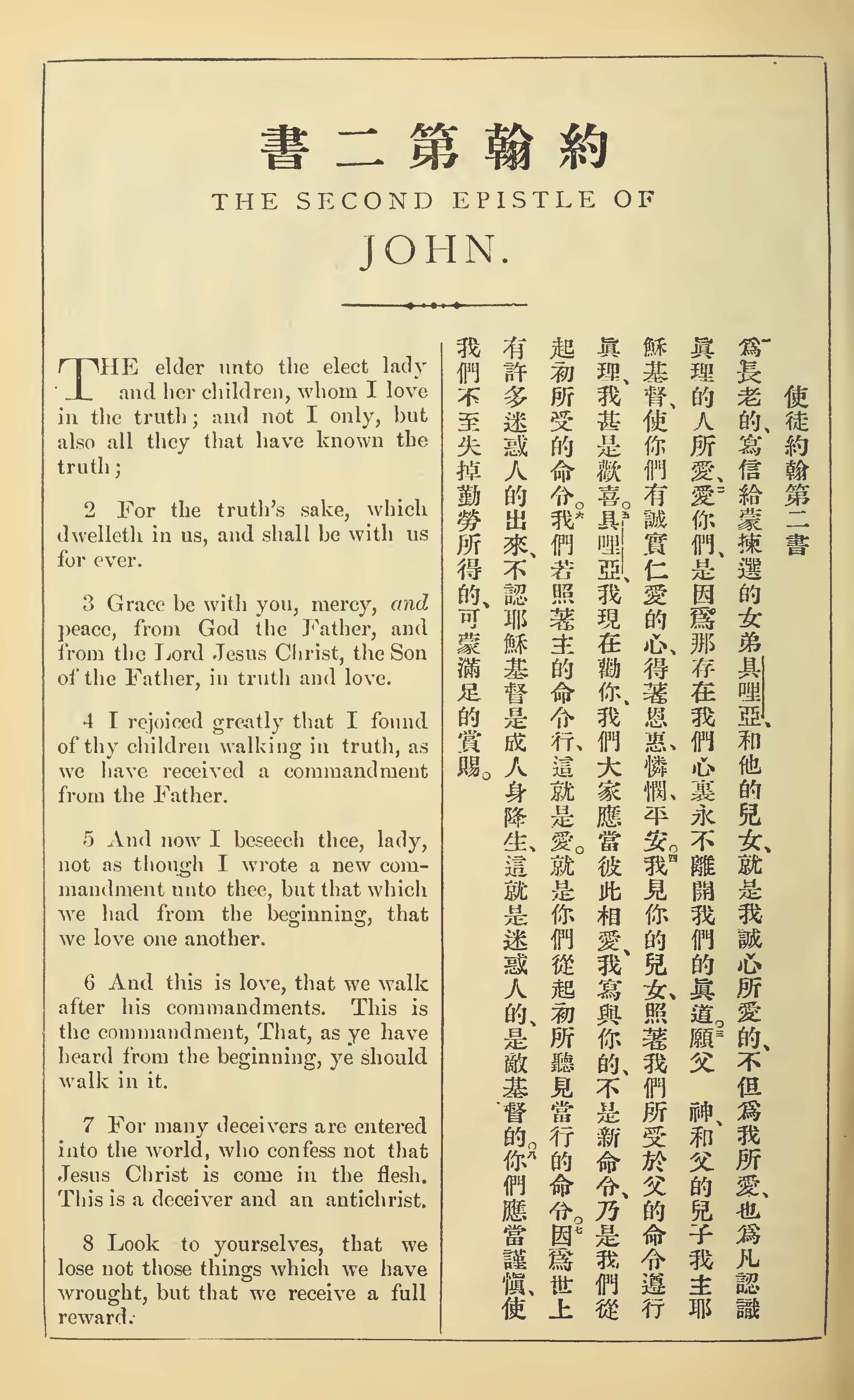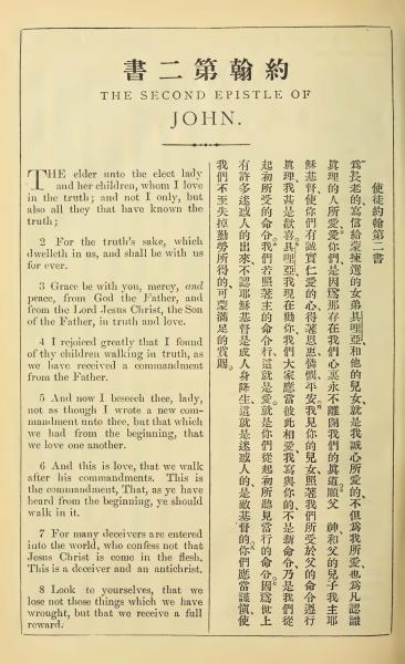 1902年新约全书(中英对照) 约翰二书 1 章 1 节到 1 章 8 节