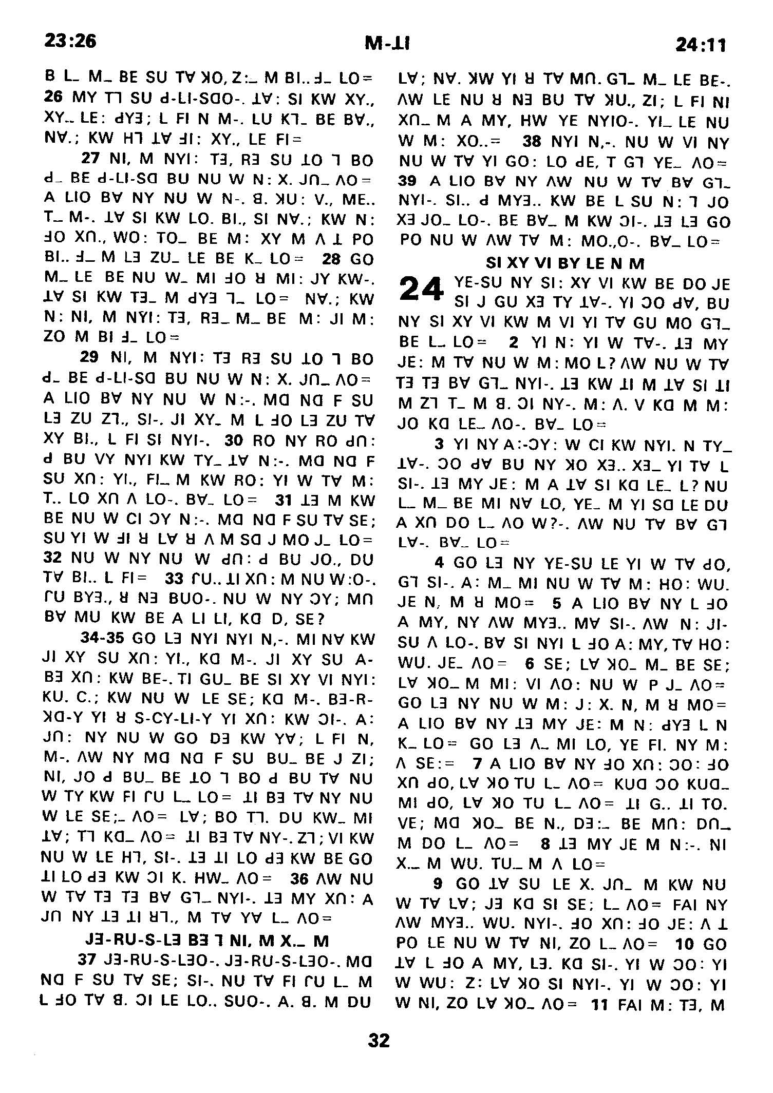 1980年傈僳语圣经全书 马太福音 23 章 26 节到 24 章 11 节
