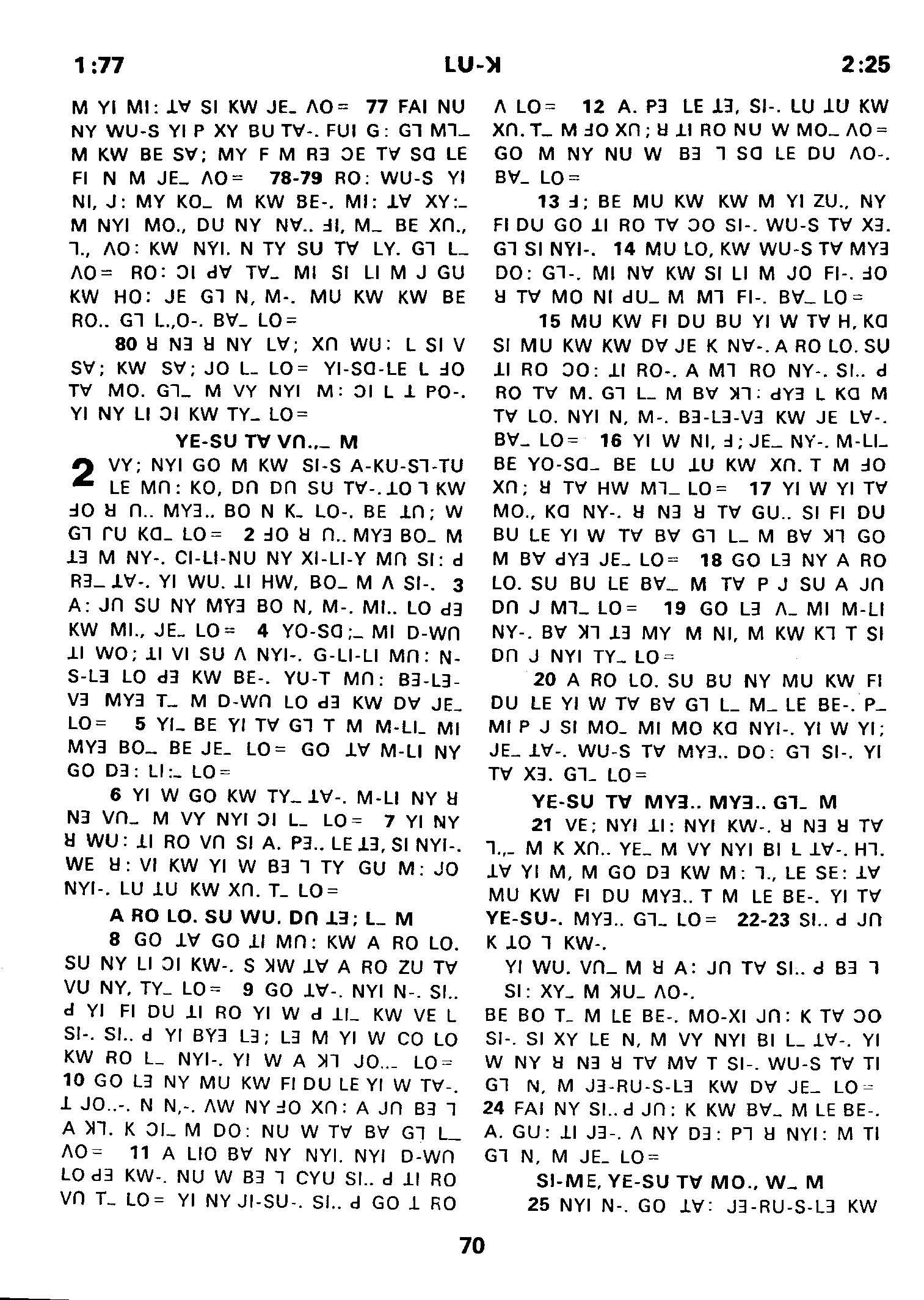 1980年傈僳语圣经全书 路加福音 1 章 77 节到 2 章 25 节