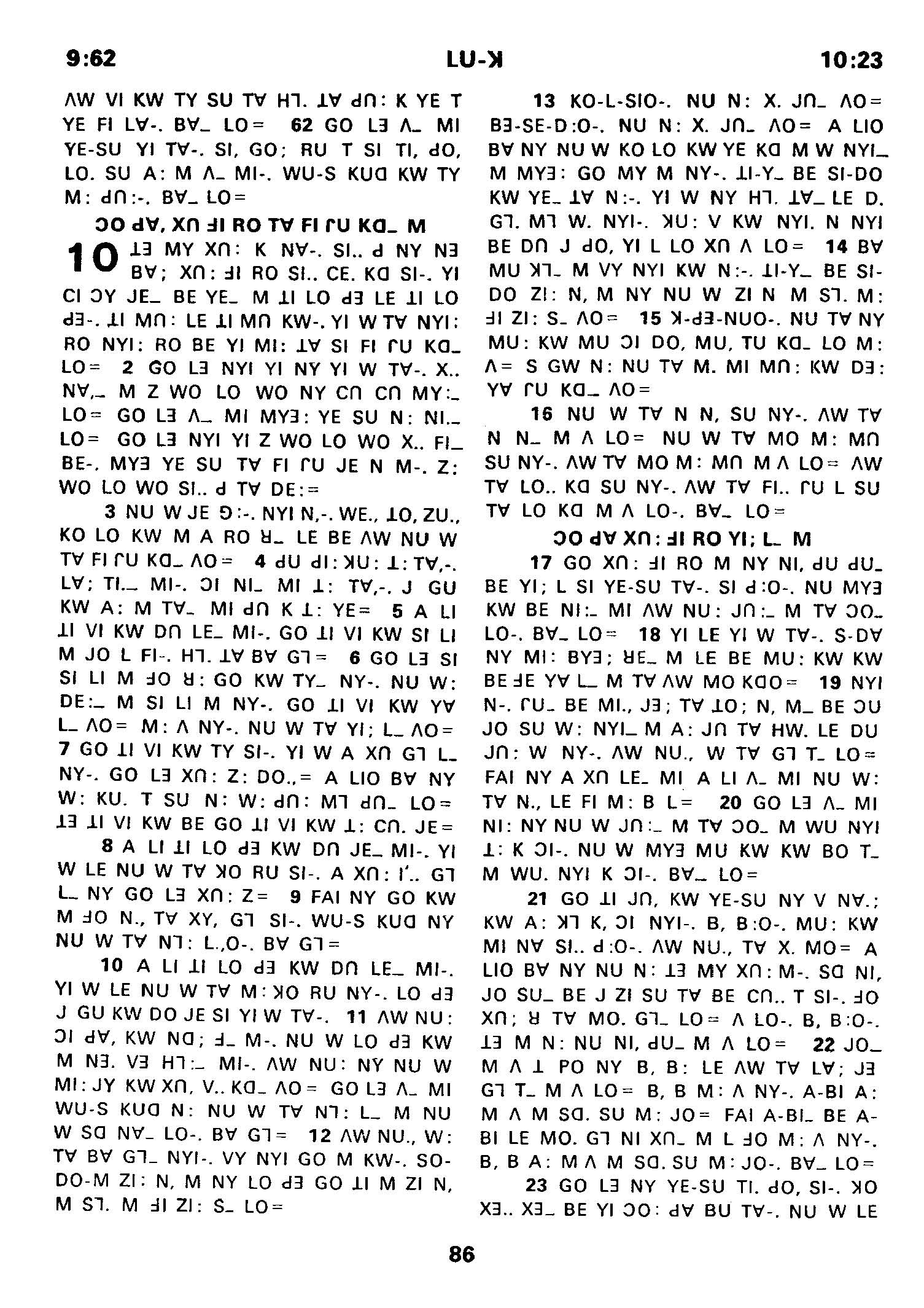 1980年傈僳语圣经全书 路加福音 9 章 62 节到 10 章 23 节