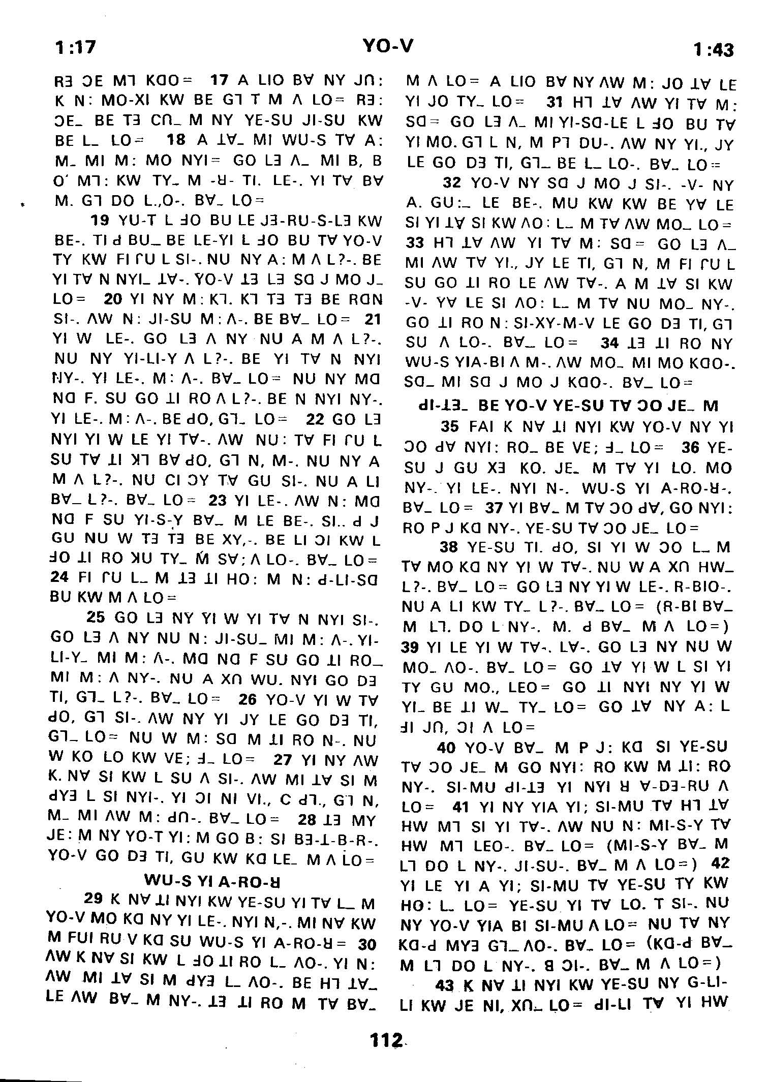 1980年傈僳语圣经全书 约翰福音 1 章 17 节到 1 章 43 节