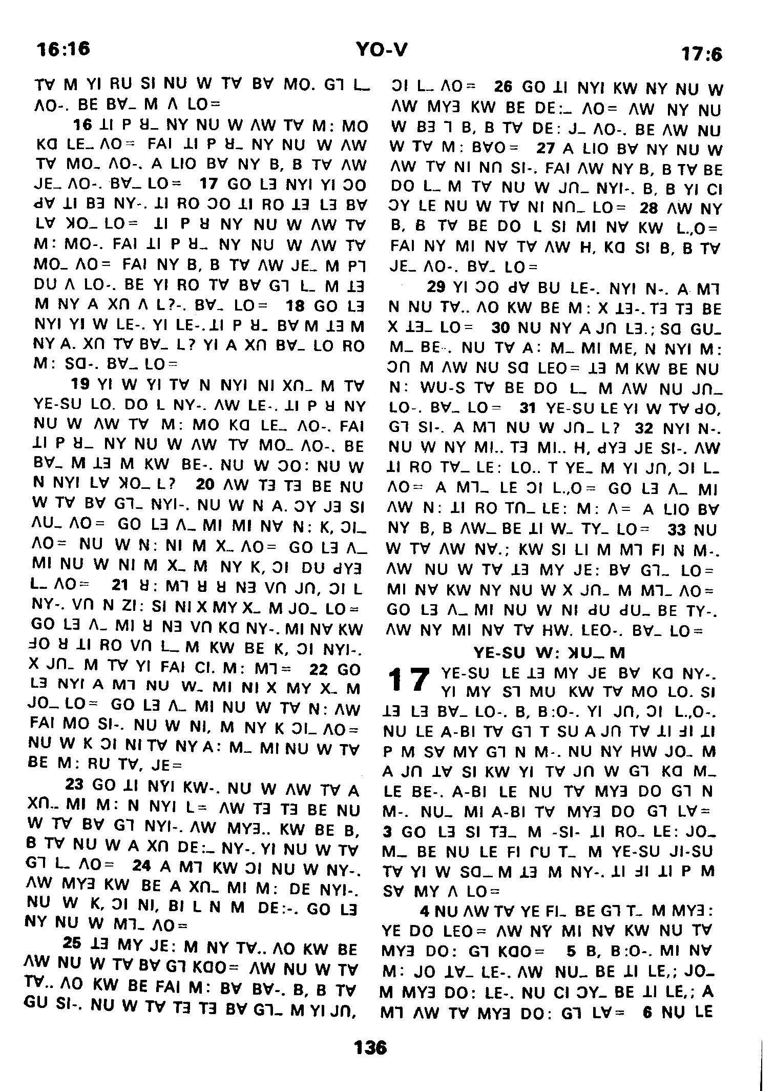 1980年傈僳语圣经全书 约翰福音 16 章 16 节到 17 章 6 节