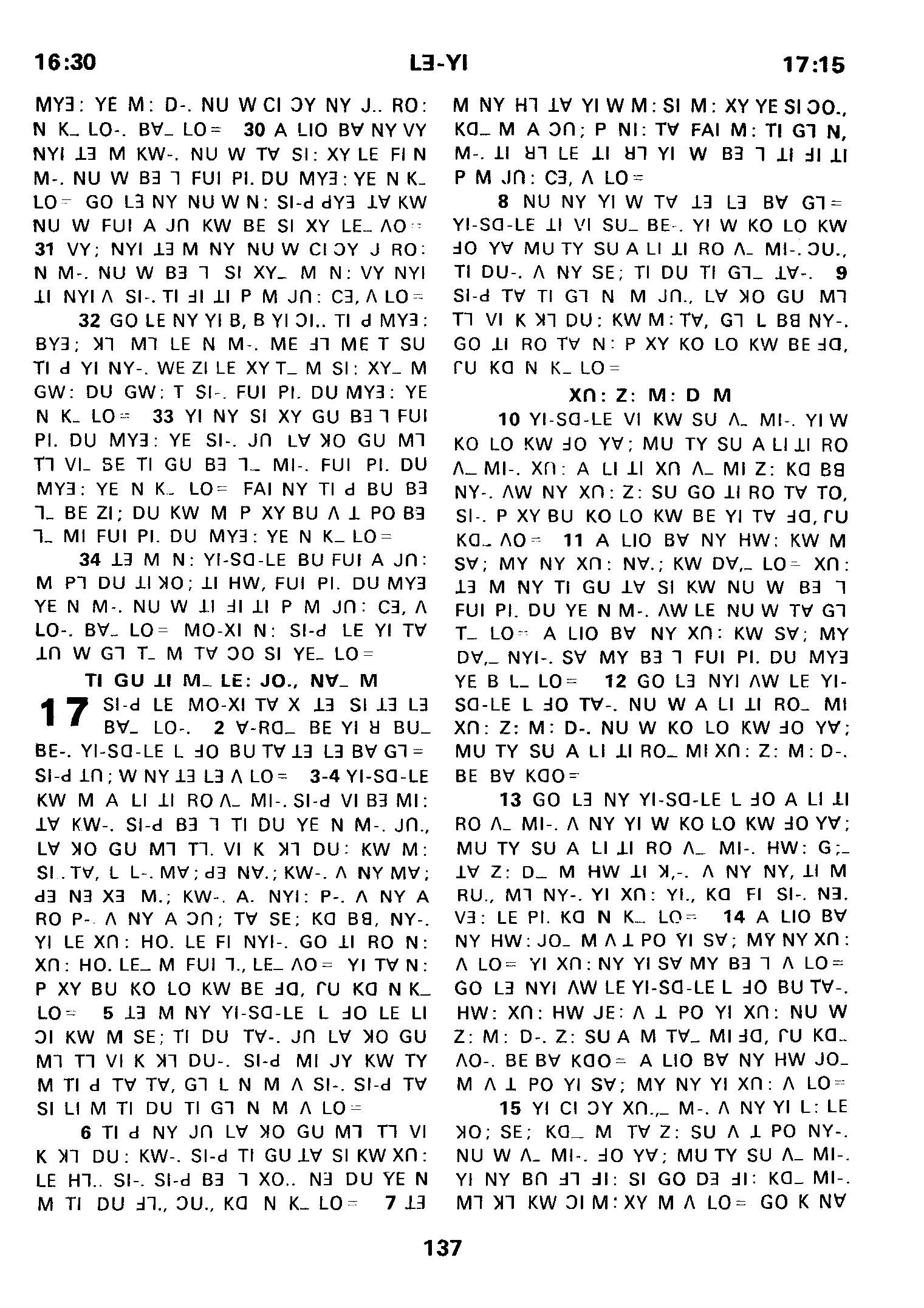 1980年傈僳语圣经全书 利未记 16 章 30 节到 17 章 15 节