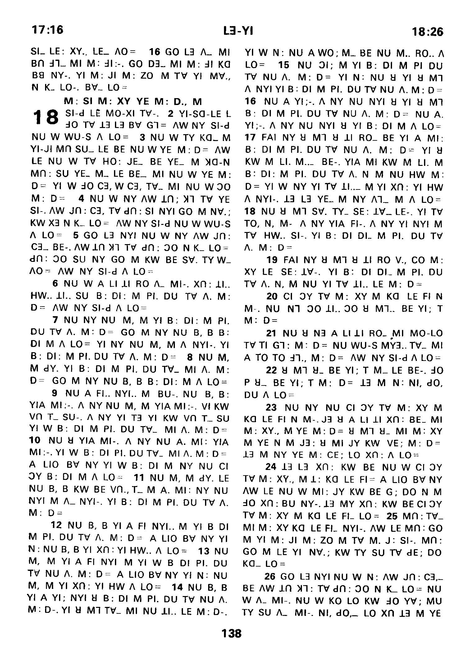 1980年傈僳语圣经全书 利未记 17 章 16 节到 18 章 26 节