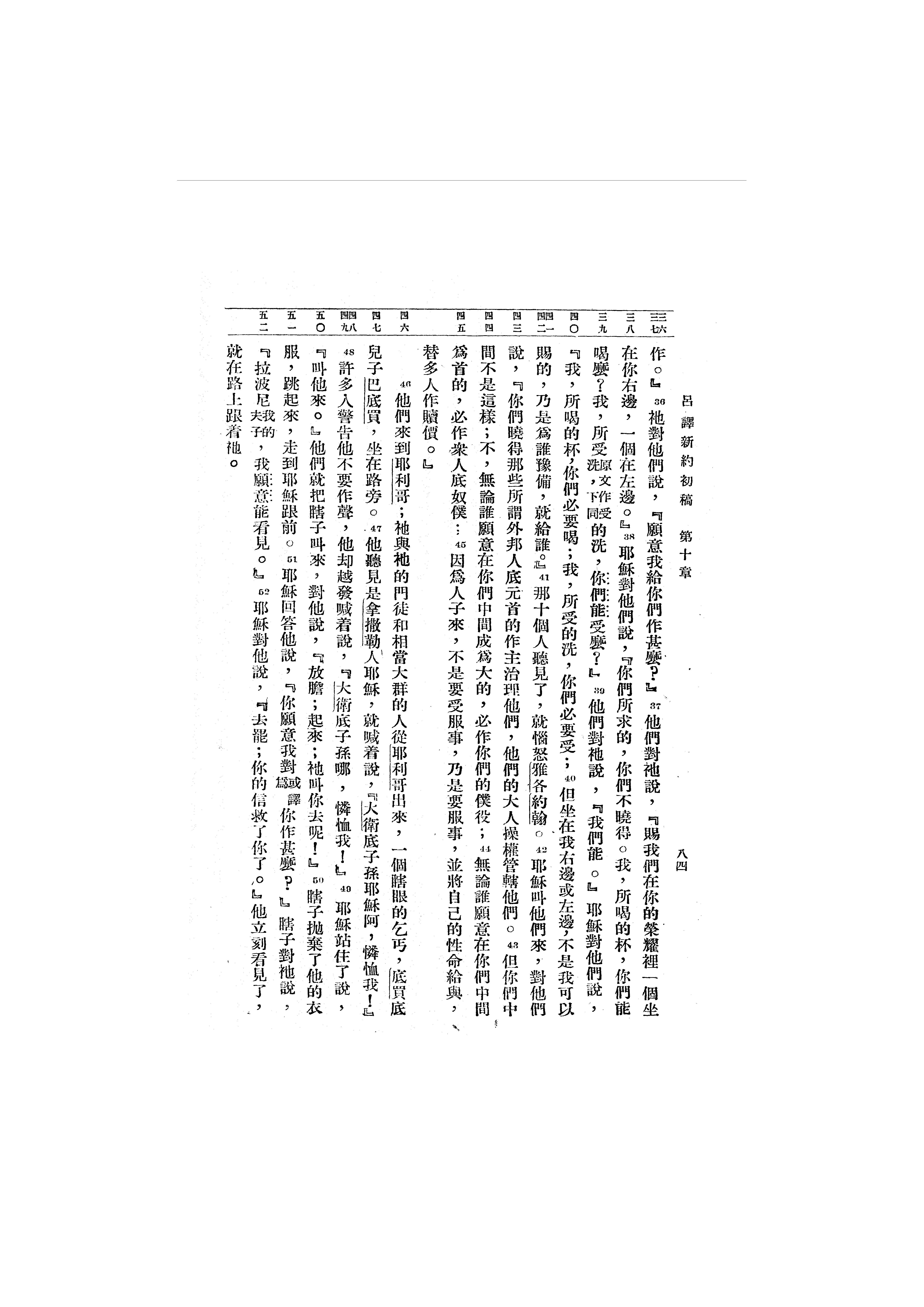 1946年吕振中译新约初稿 马可福音 10 章 36 节到 10 章 52 节