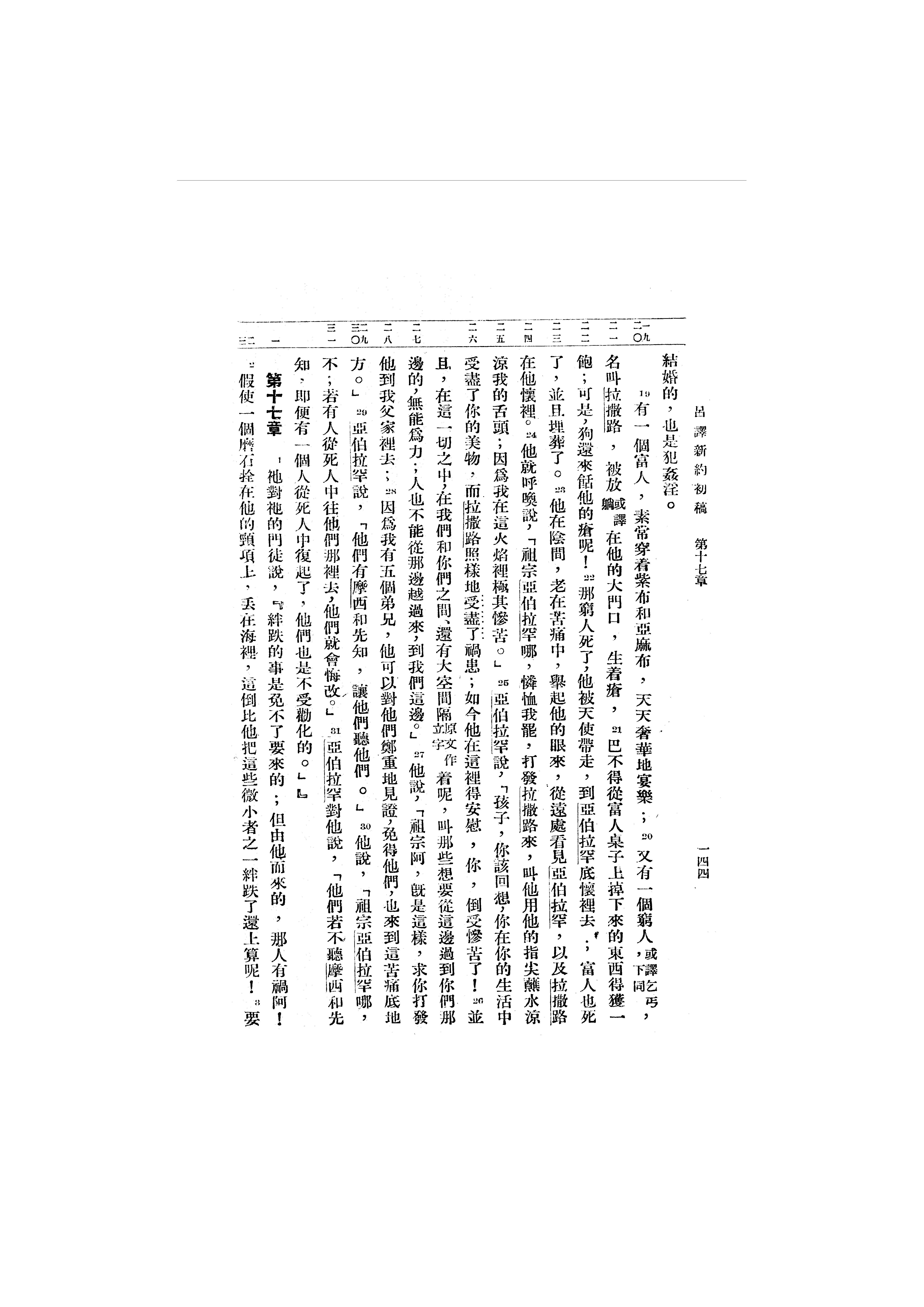 1946年吕振中译新约初稿 路加福音 16 章 19 节到 17 章 3 节