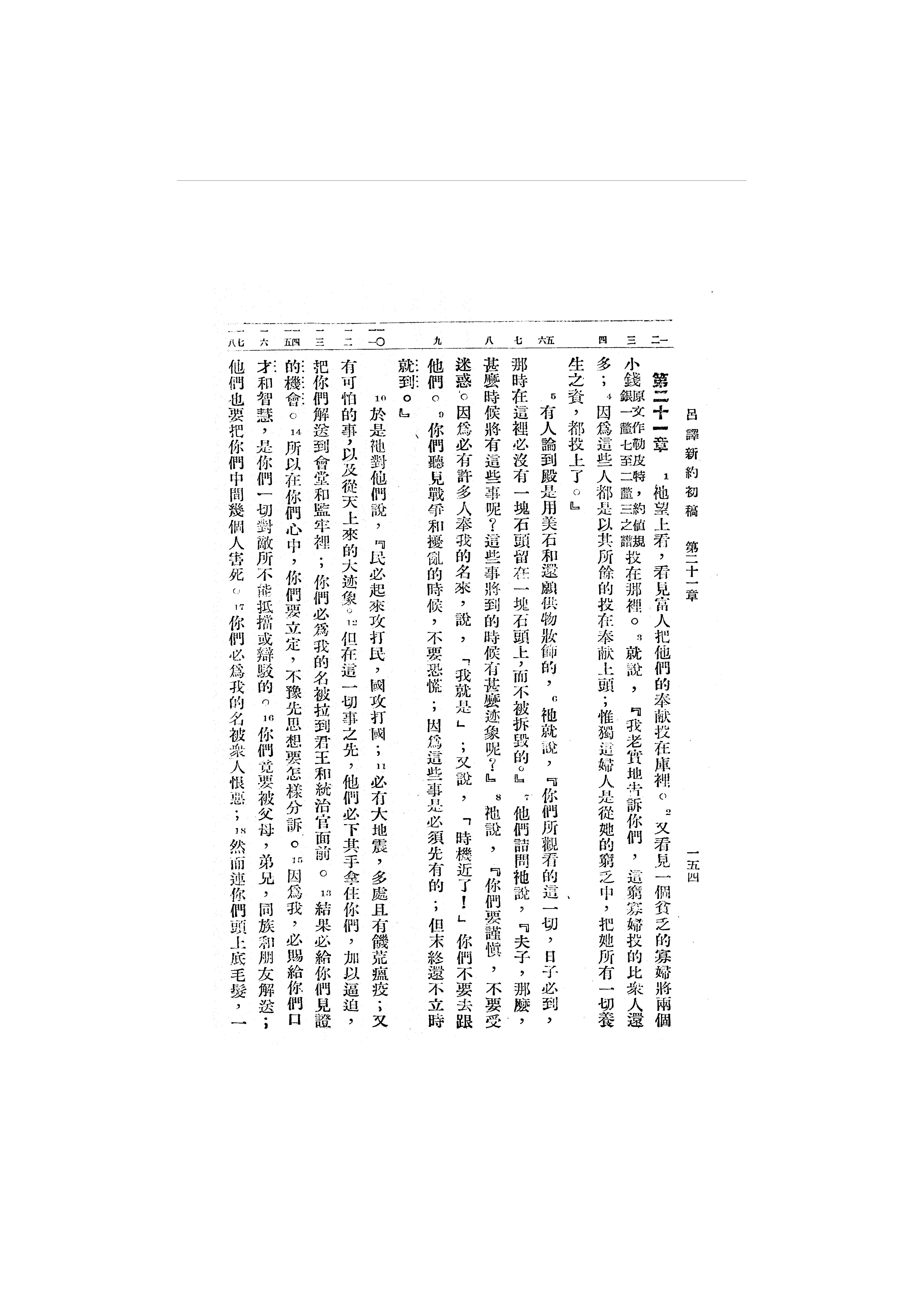 1946年吕振中译新约初稿 路加福音 21 章 1 节到 21 章 18 节
